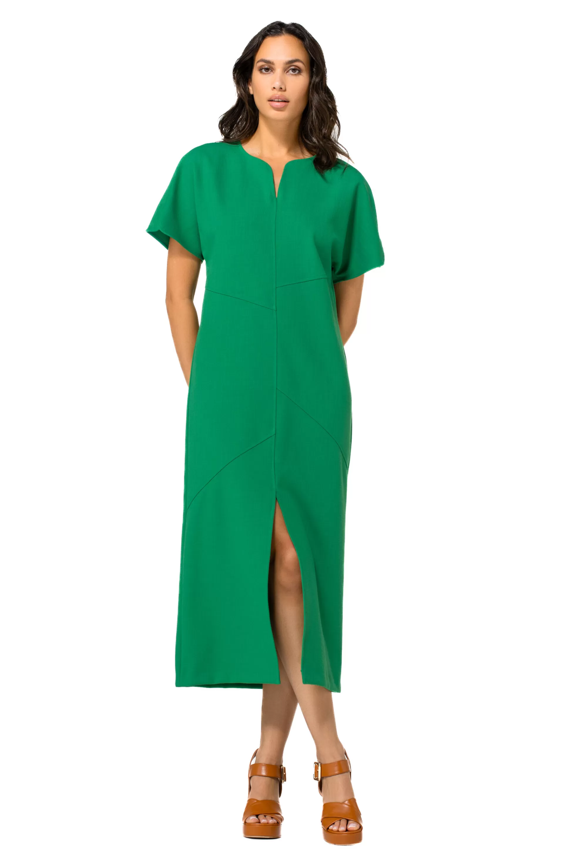 Robe Midi Droite Confortable &Nbsp;Non Doublée Pour Plus De Confort Pas De Fermeture Pas De Poches Manches Courtes Ajus…