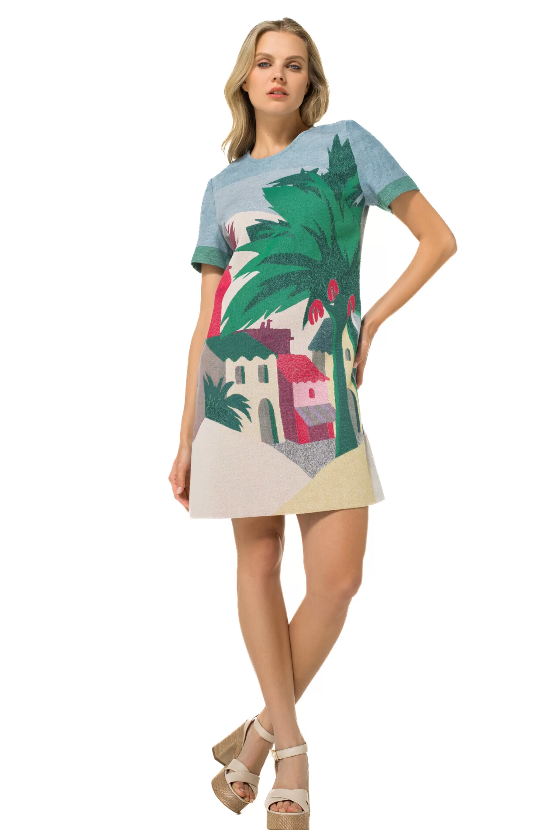 Robe Droite En Coton Avec Imprimé Allover &Nbsp;Non Doublé Fermeture Éclair Dissimulée Au Milieu Du Dos Poches Laté…