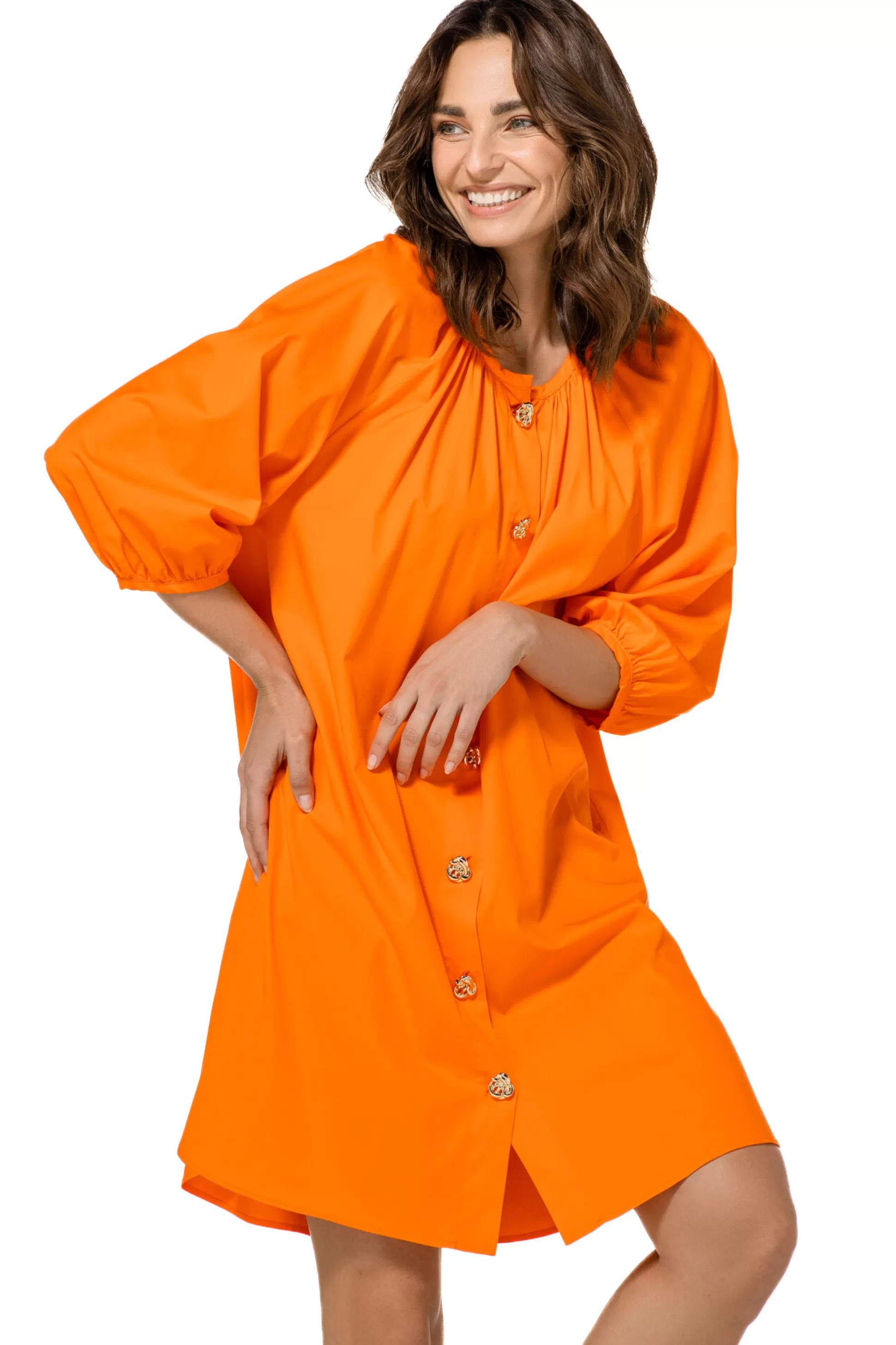 Robe Ample Extensible &Nbsp;Non Doublée Pour Plus De Confort Fermeture À Boutons Au Milieu Du Devant Manches 3/4 Large…