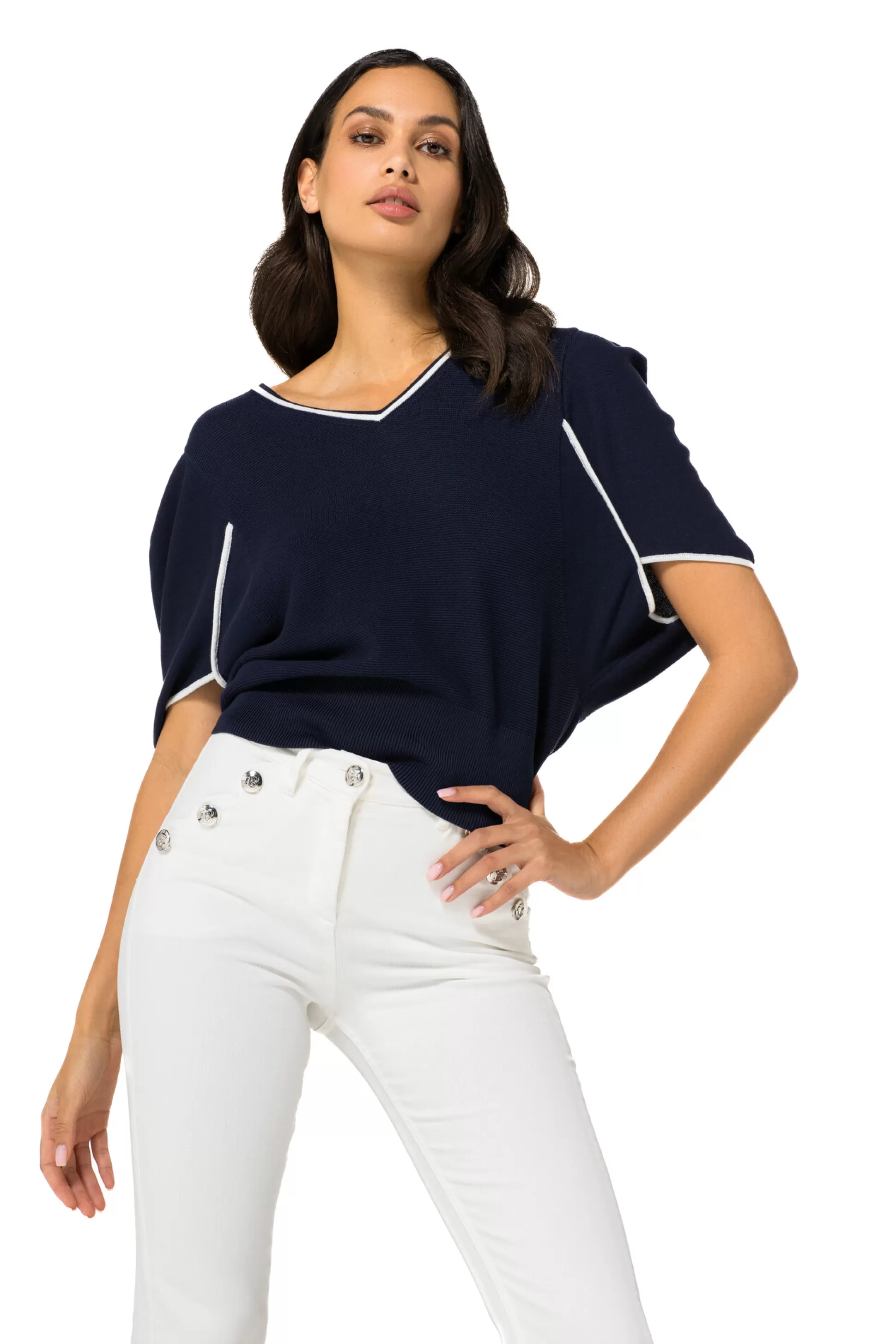 Pull En Maille Fine Avec Effet De Manches &Nbsp;Col En V Col À Ourlet Haut