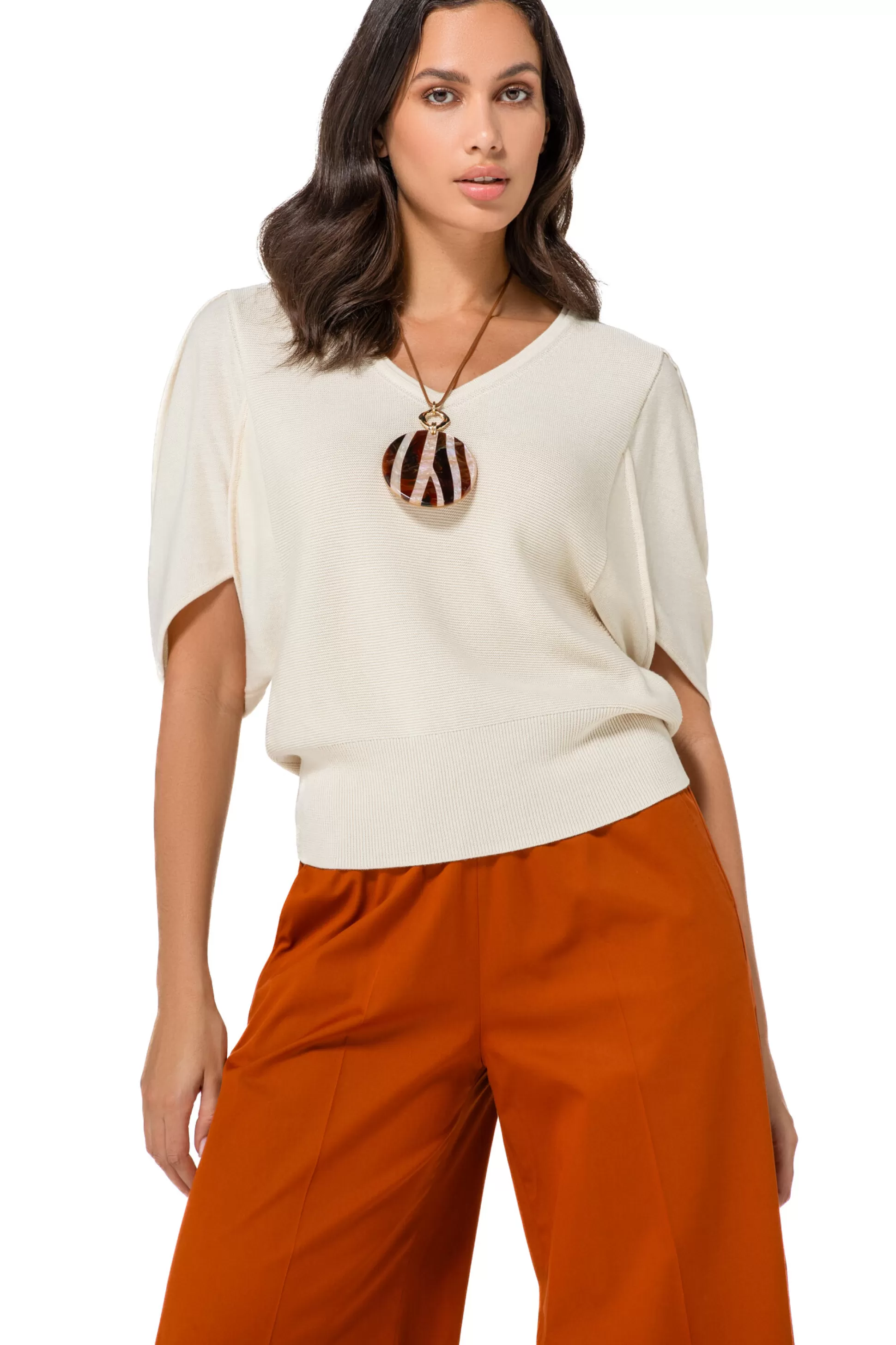 Pull En Maille Fine Avec Effet De Manches &Nbsp;Col En V Col À Ourlet Haut