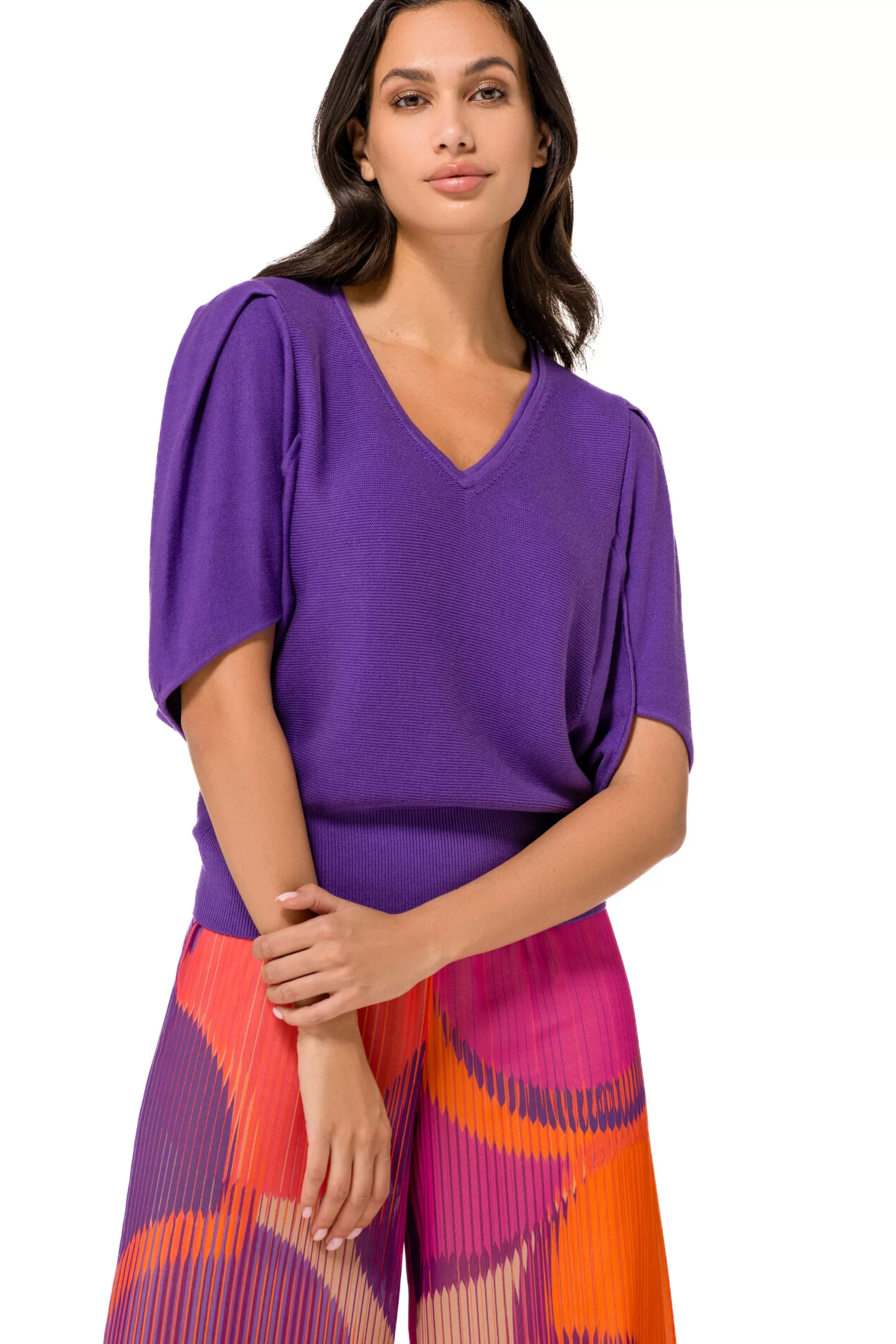 Pull En Maille Fine Avec Effet De Manches &Nbsp;Col En V Col À Ourlet Haut
