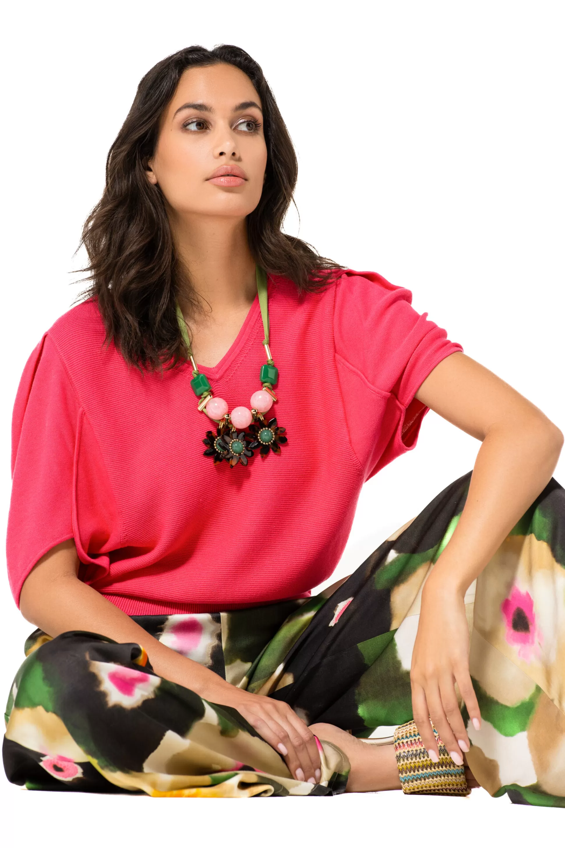 Pull En Maille Fine Avec Effet De Manches &Nbsp;Col En V Col À Ourlet Haut