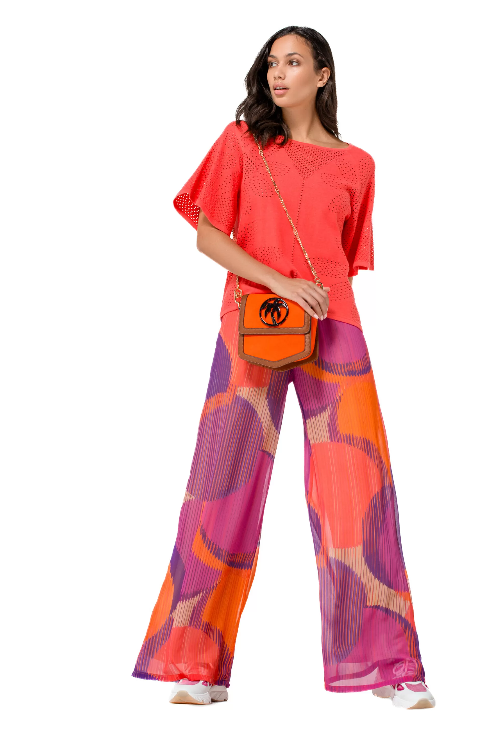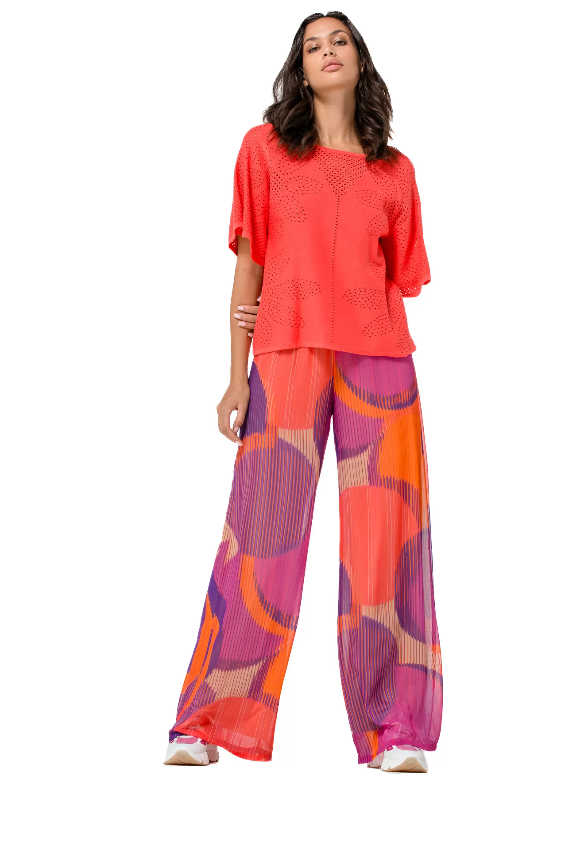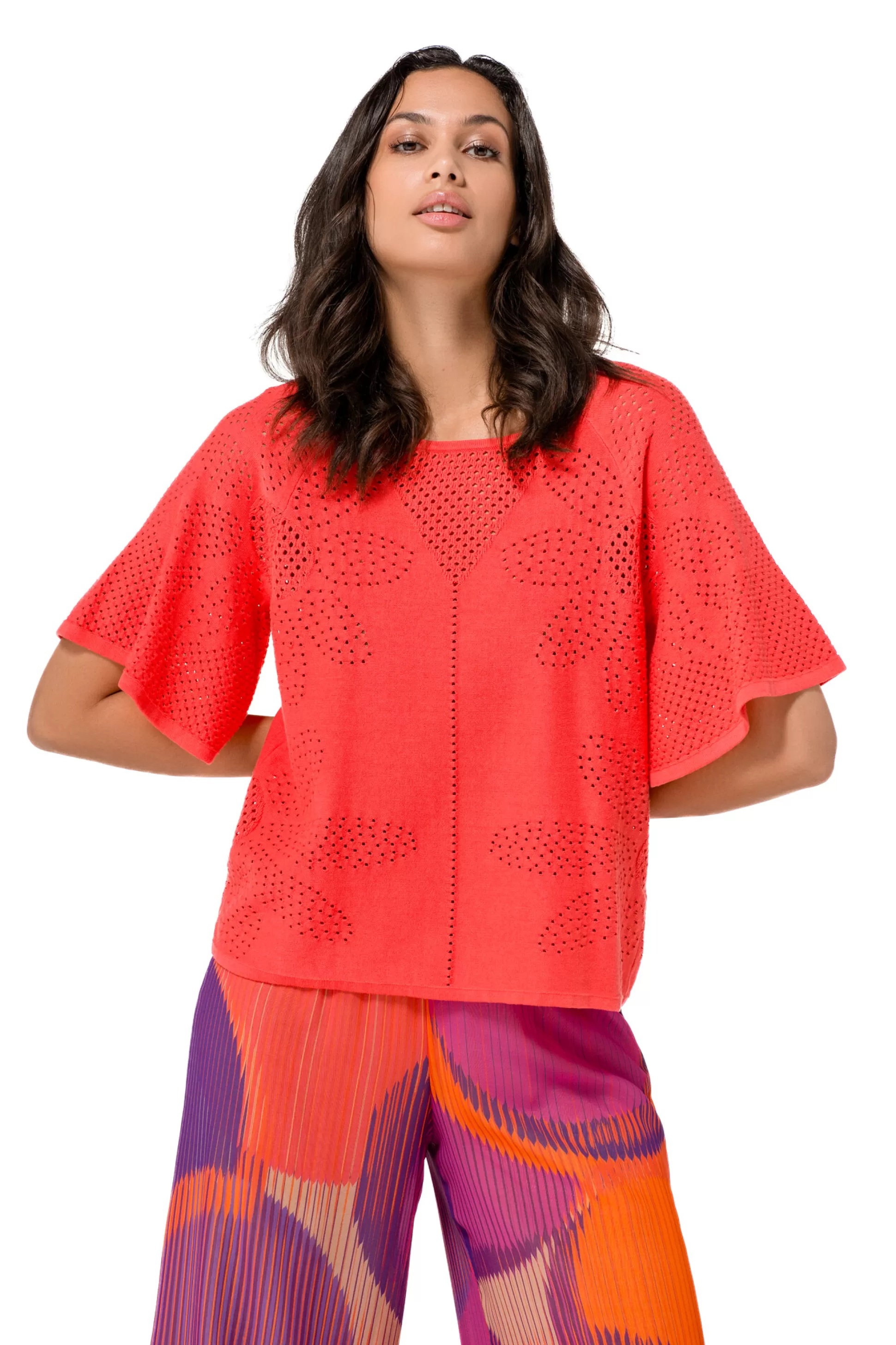 Pull En Maille Fine Effet Fleur &Nbsp;Manches Courtes Frivoles Col Rond Profond