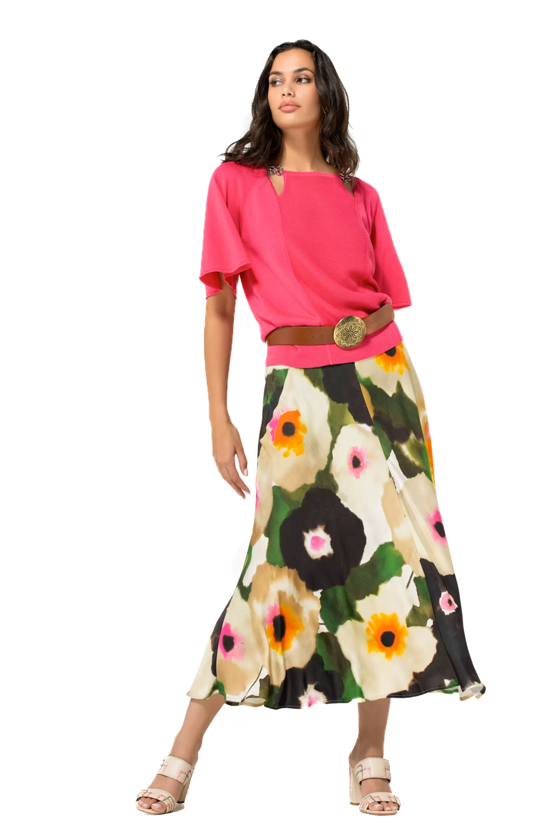 Pull En Maille Fine Avec Manches Fantaisie &Nbsp;Manches Courtes Frivoles Ourlet Haut Encolure Ronde Profonde Avec Fanta…