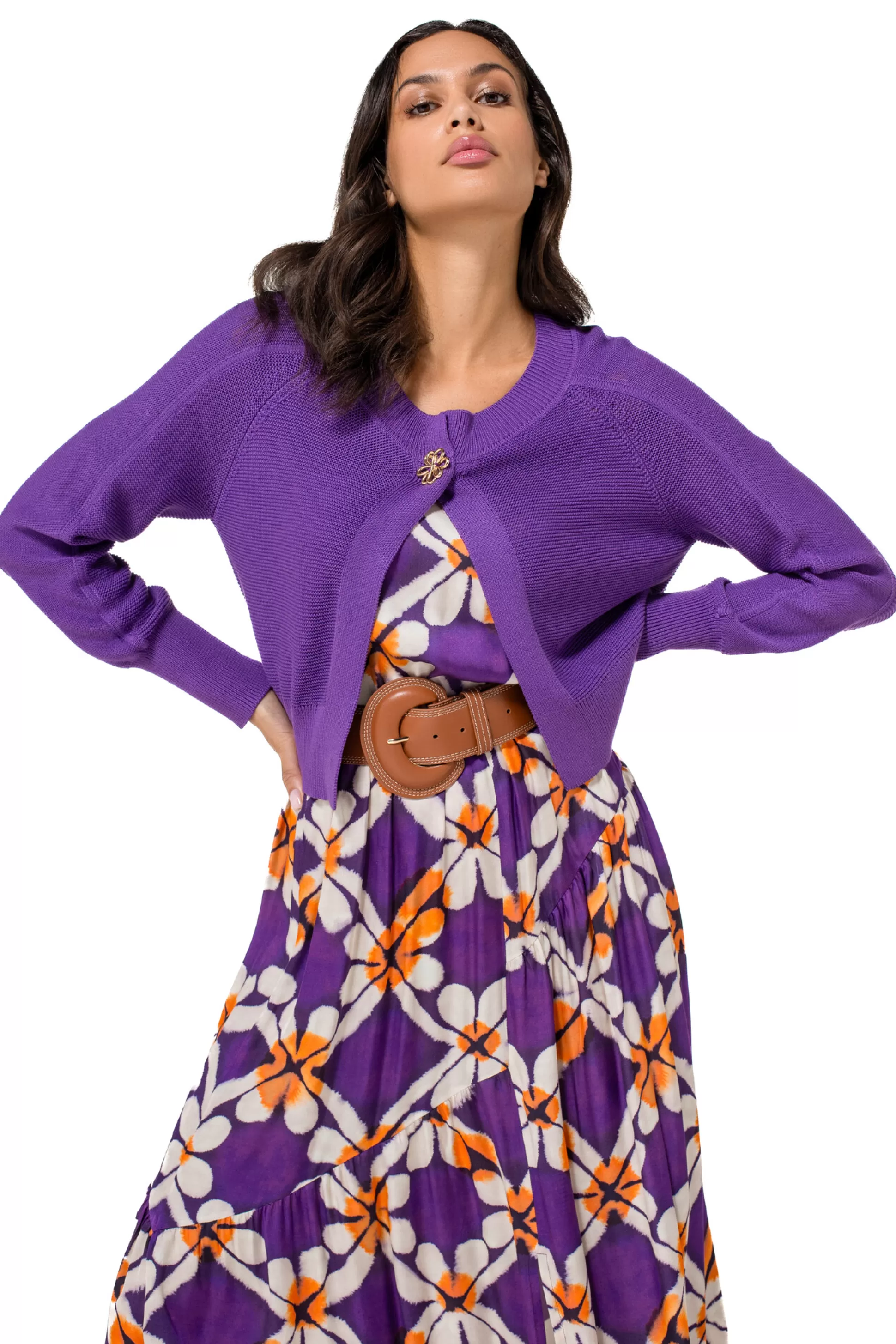 Boléro En Maille Fine &Nbsp;Fermeture Boutonnée Sur L’Encolure Manches Longues Avec Col Montant Ourlet Haut
