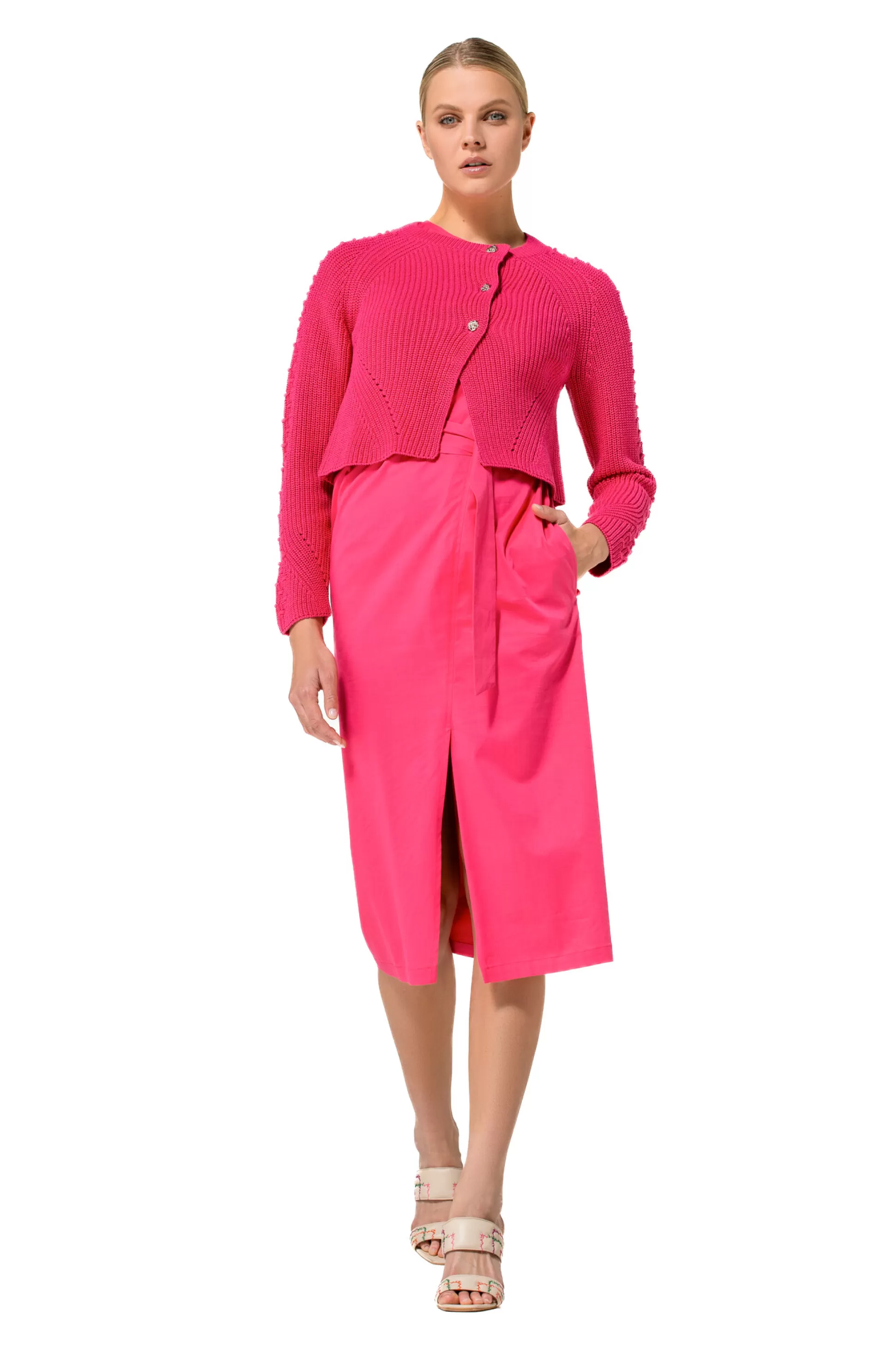 Boléro En Grosse Maille De Coton &Nbsp;Manches Longues Fermeture Boutonnée Symétrique Sur Le Devant