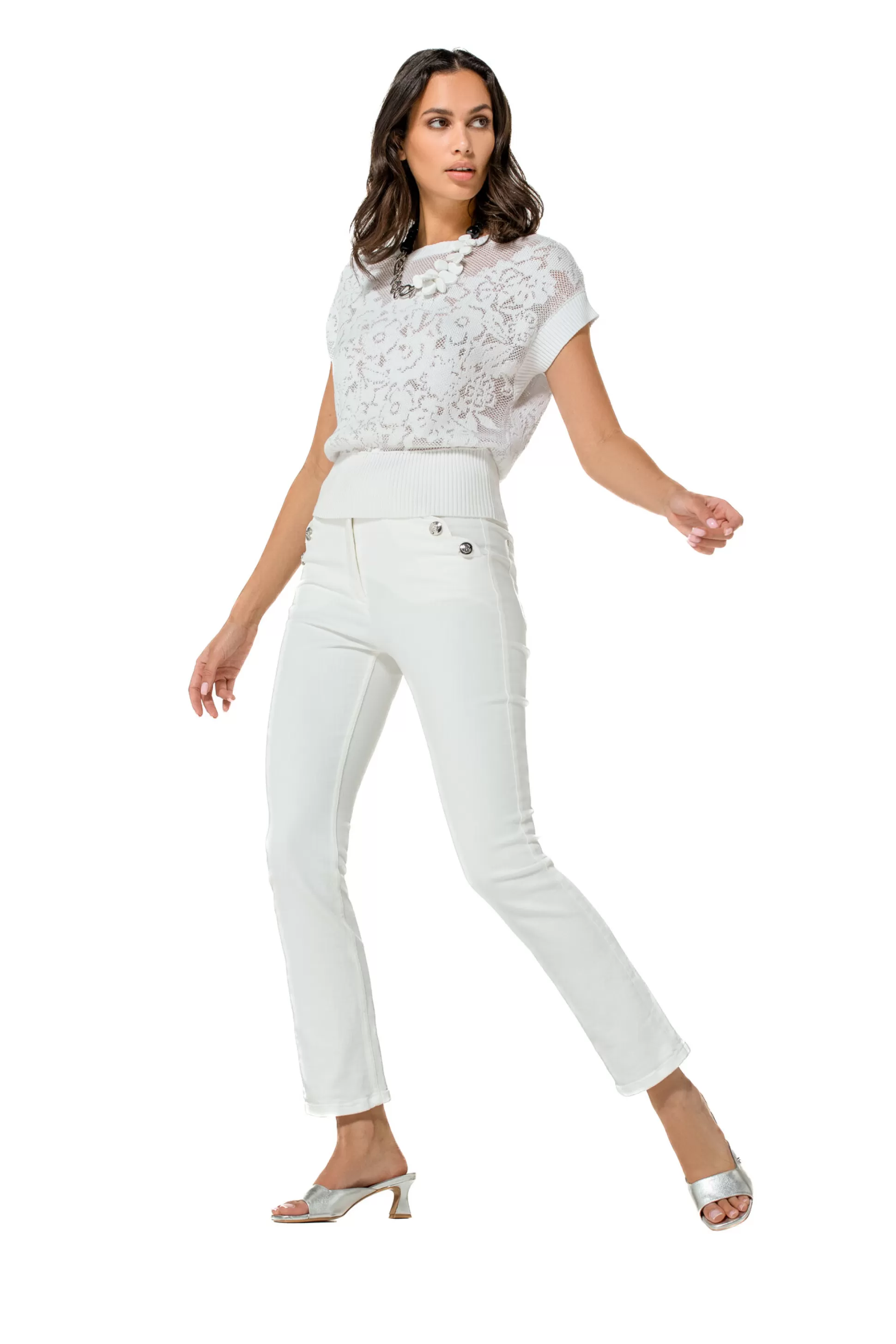 Jean Slim Confortable, Taille Moyenne &Nbsp;Fermeture Éclair Avec Bouton Au Milieu Devant Poches Latérales Avec Bouton…