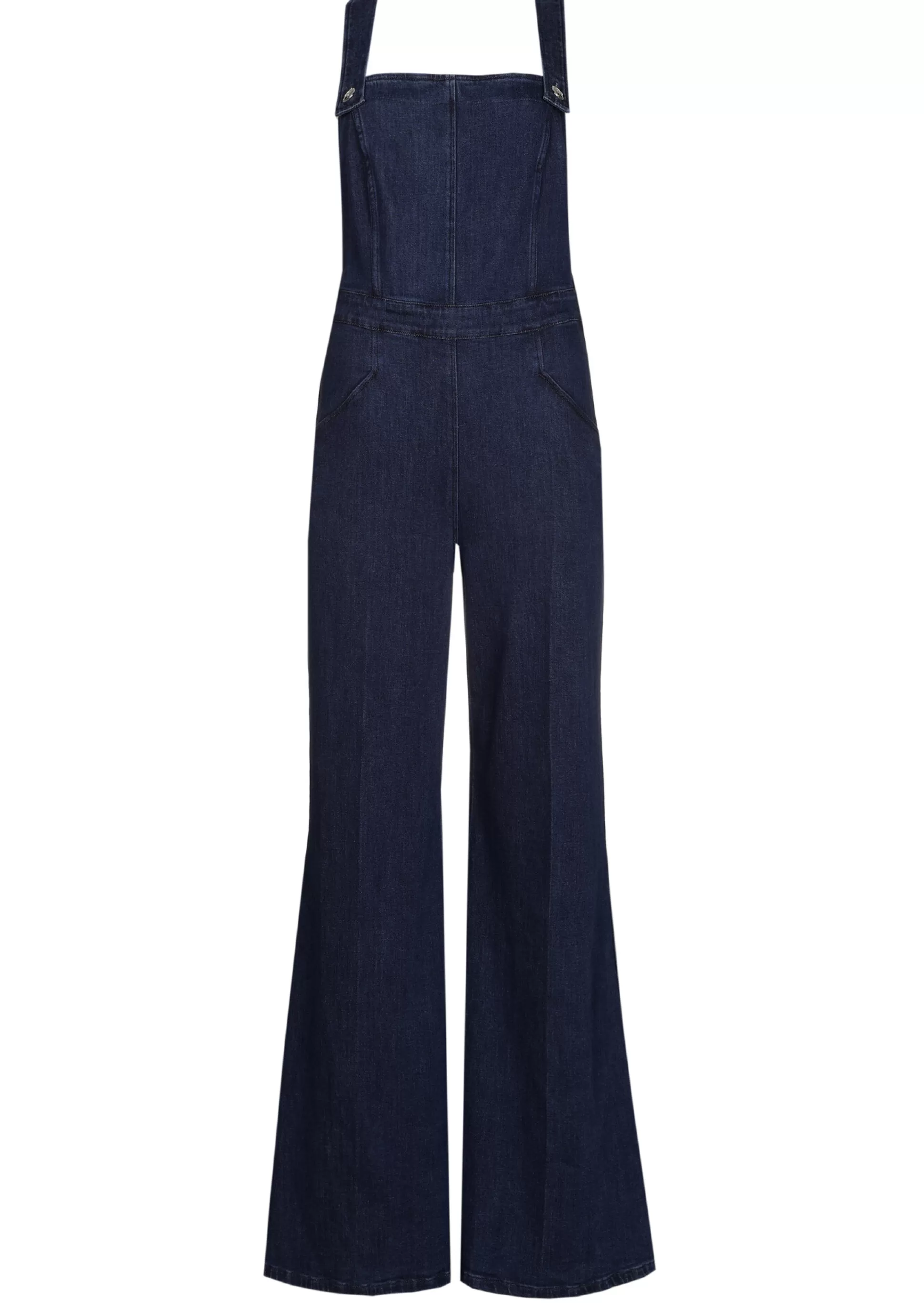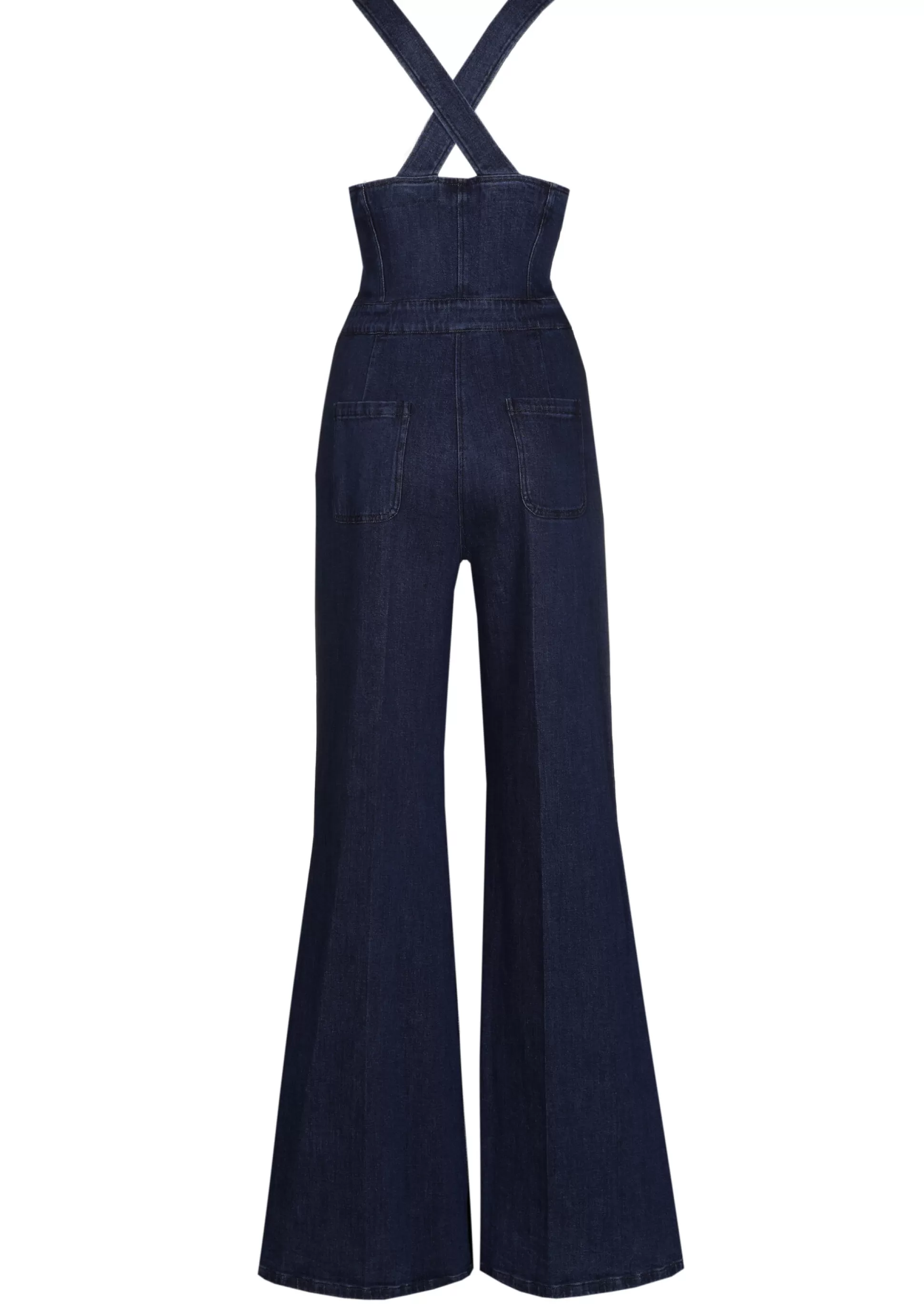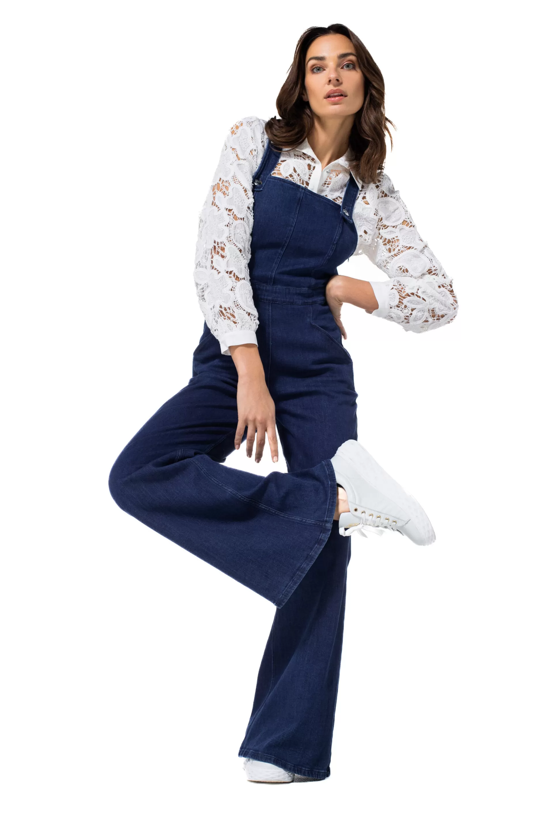 Salopette Confortable En Jean, Jambe Large &Nbsp;Zip Dans La Couture Latérale Poches Latérales Sur Le Devant Poches Br…