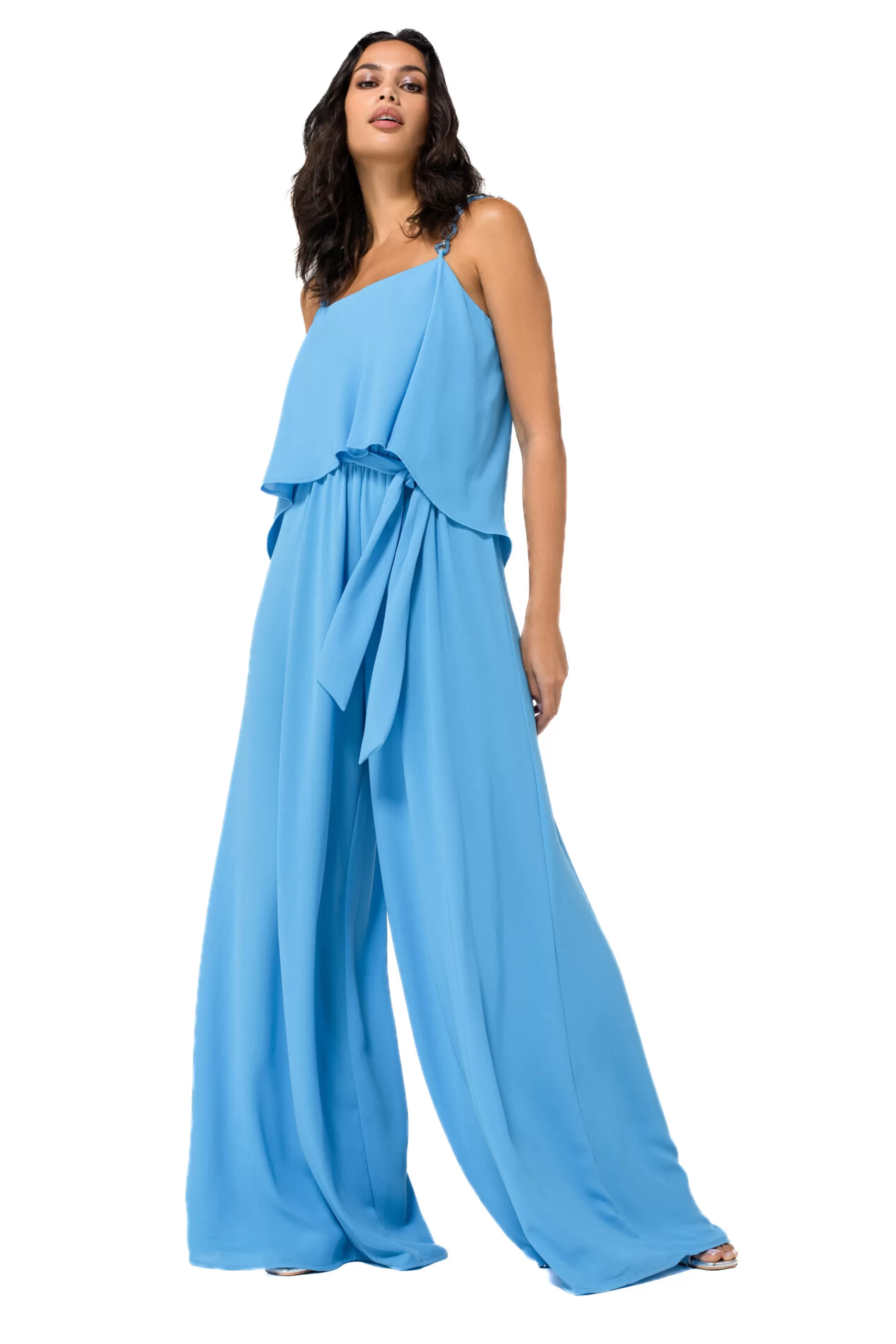 Combinaison Robe Fluide, Jambe Large &Nbsp;Fermeture Goutte À Goutte Avec Bouton Dans Le Dos Ceinture Élastique Ceintu…