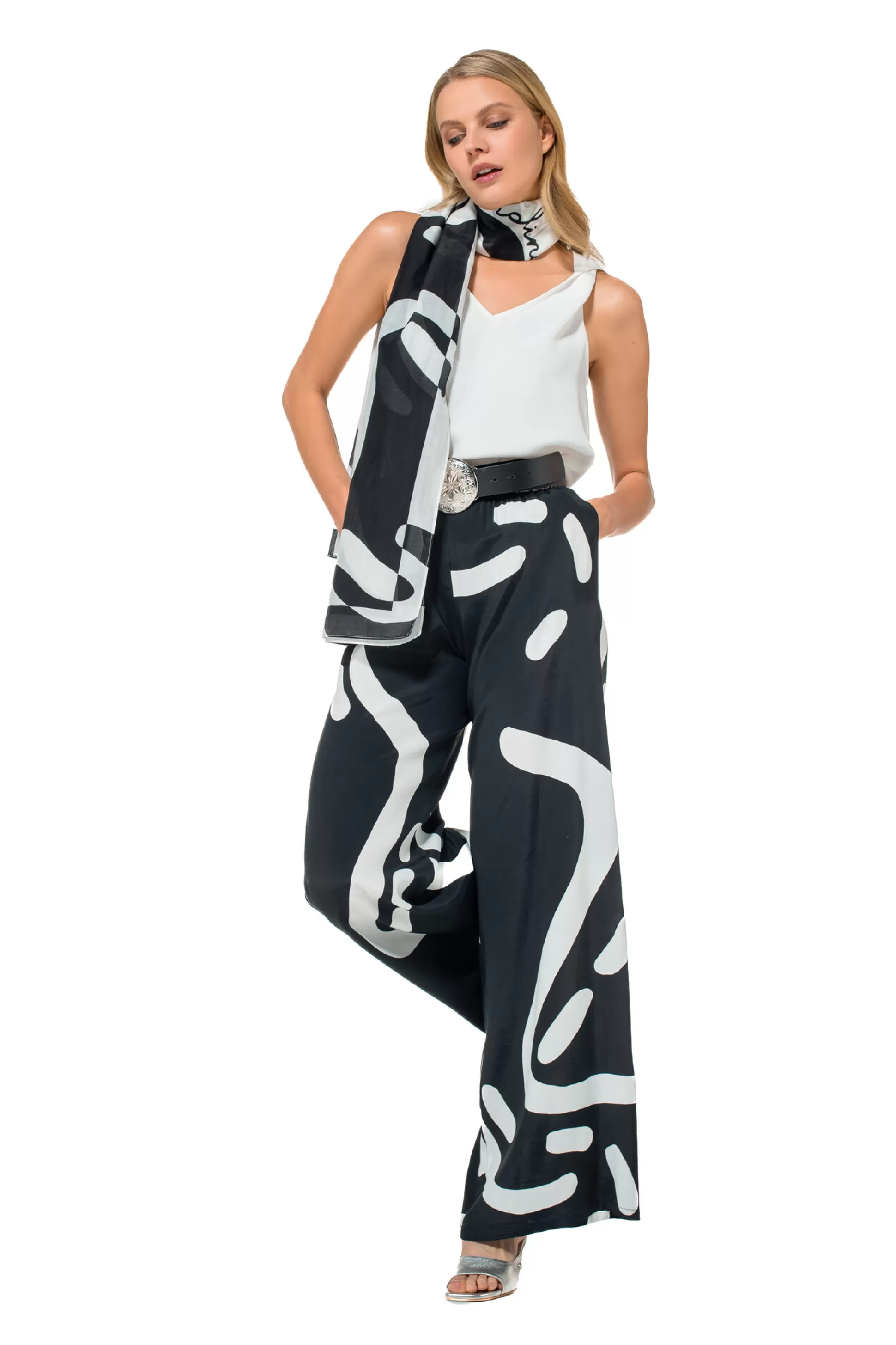 Pantalon Palazzo Fluide, Taille Normale &Nbsp;Pas De Fermeture Poches Latérales Dans Couture Latérale Élastique À La…
