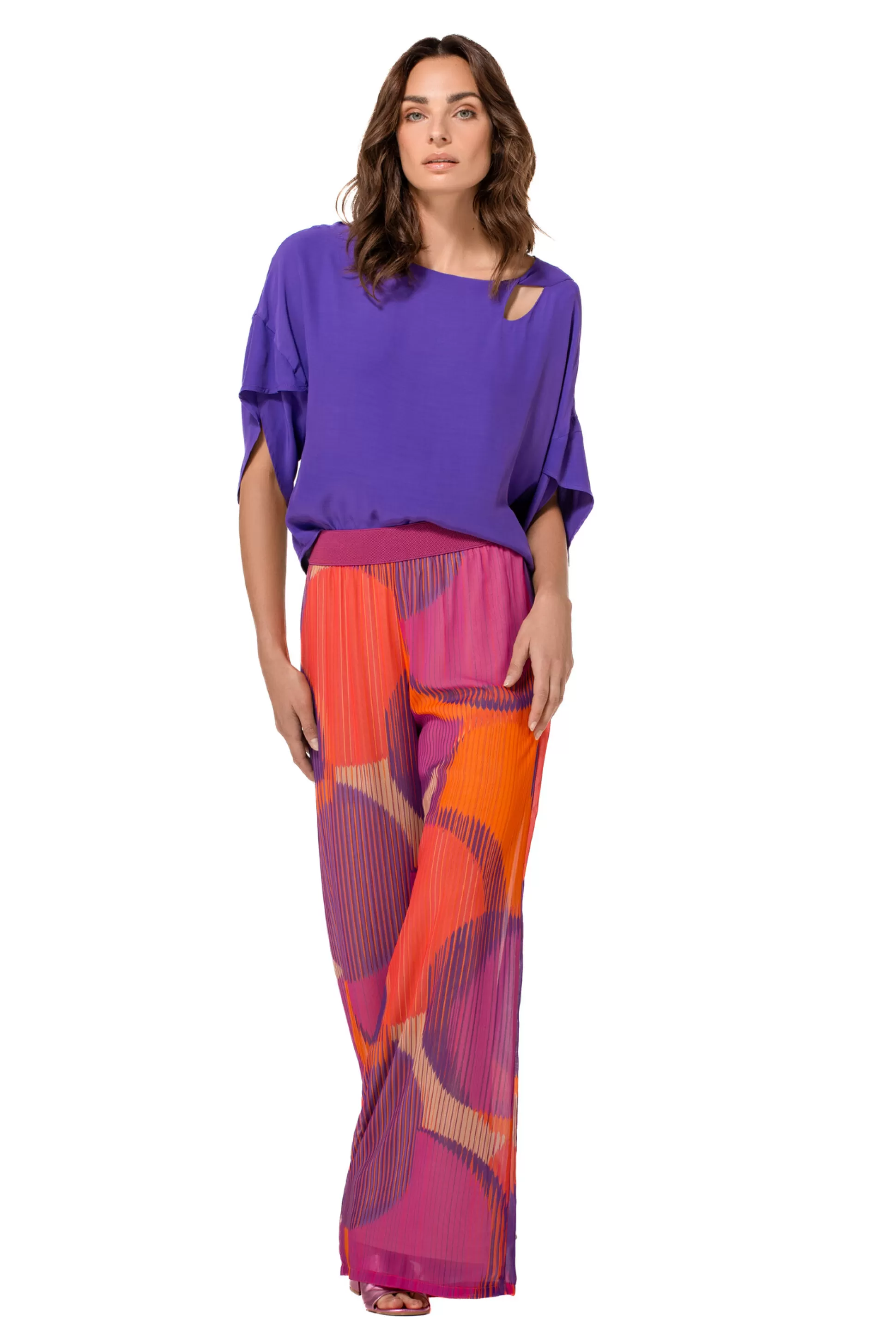 Pantalon Palazzo Fluide Effet Plissé &Nbsp;Pas De Fermeture Pas De Poches Taille Élastique Doublé Toucher : Cr…