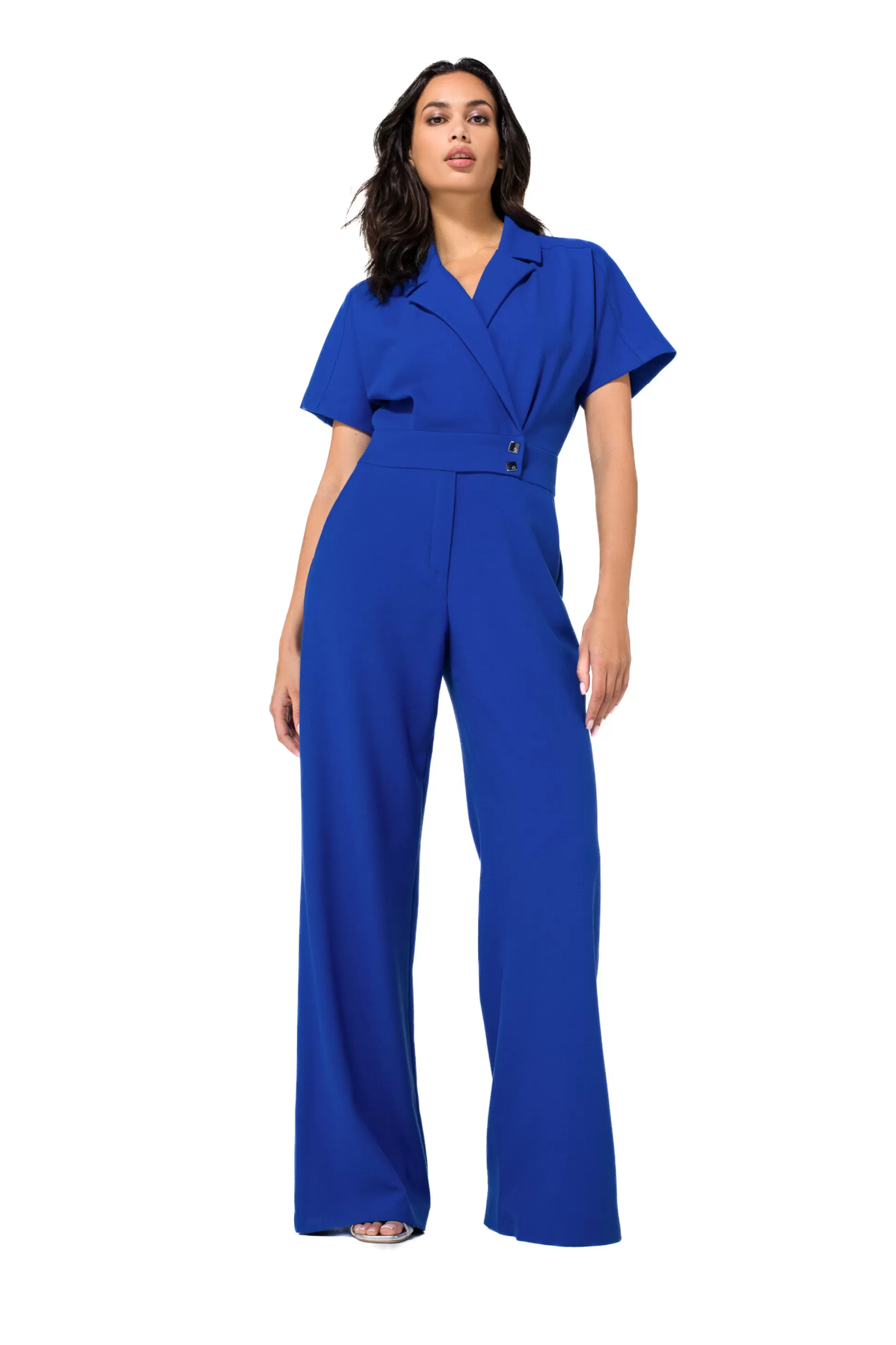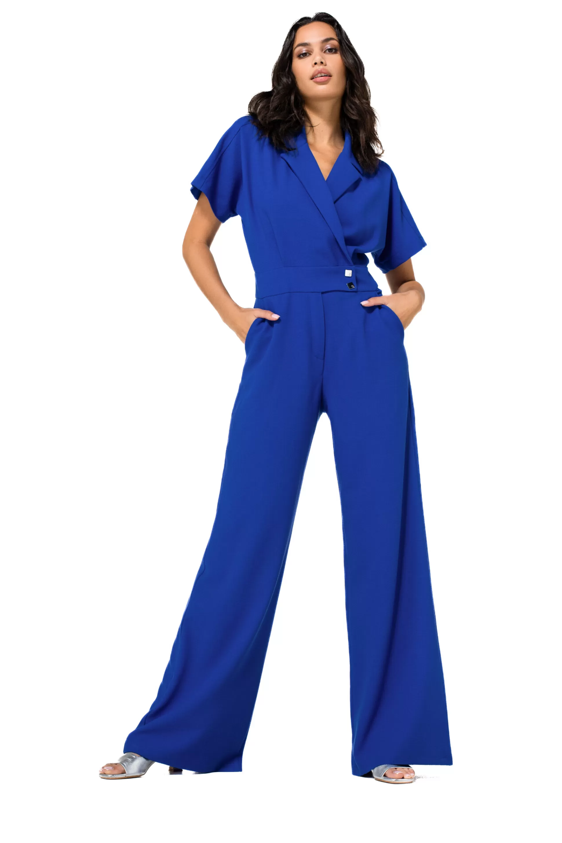 Combinaison Fluide Et Confortable, Jambe Large &Nbsp;Fermeture Cache-Cœur Avec Fermeture Éclair Cachée Poches Latéra…