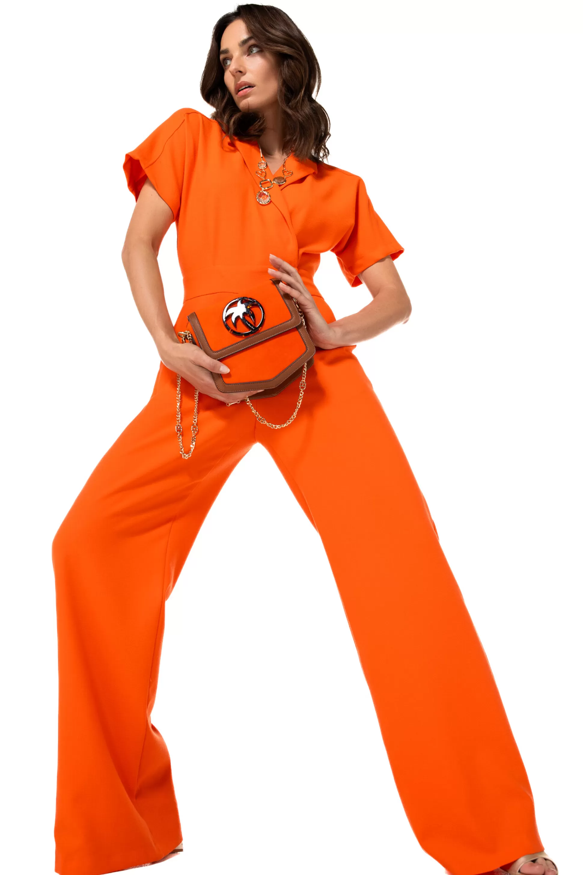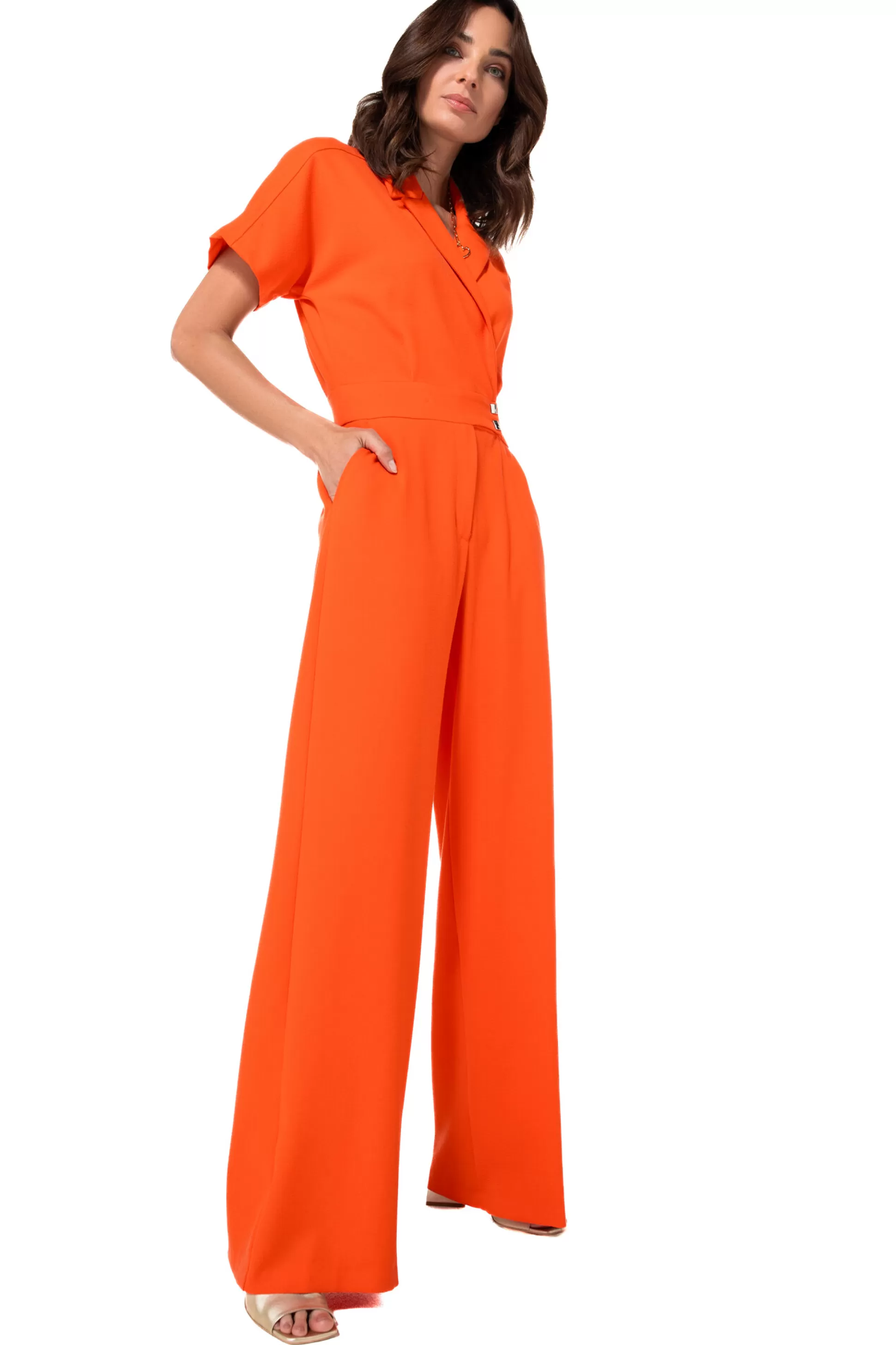 Combinaison Fluide Et Confortable, Jambe Large &Nbsp;Fermeture Cache-Cœur Avec Fermeture Éclair Cachée Poches Latéra…