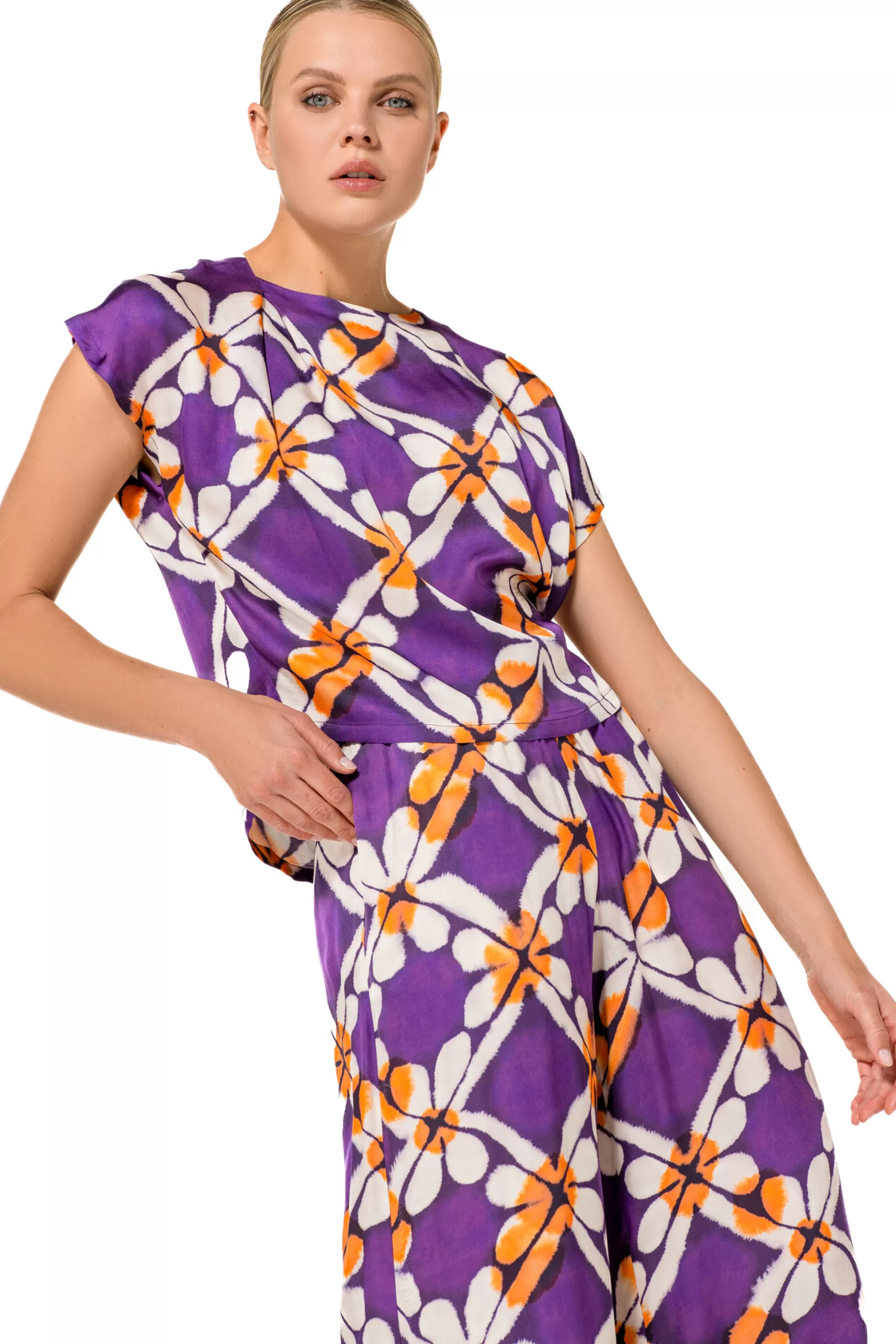 Haut Court Et Fluide &Nbsp;Fermeture Goutte-À-Goutte Avec Bouton Au Milieu Du Dos Toucher : Soie Brillante