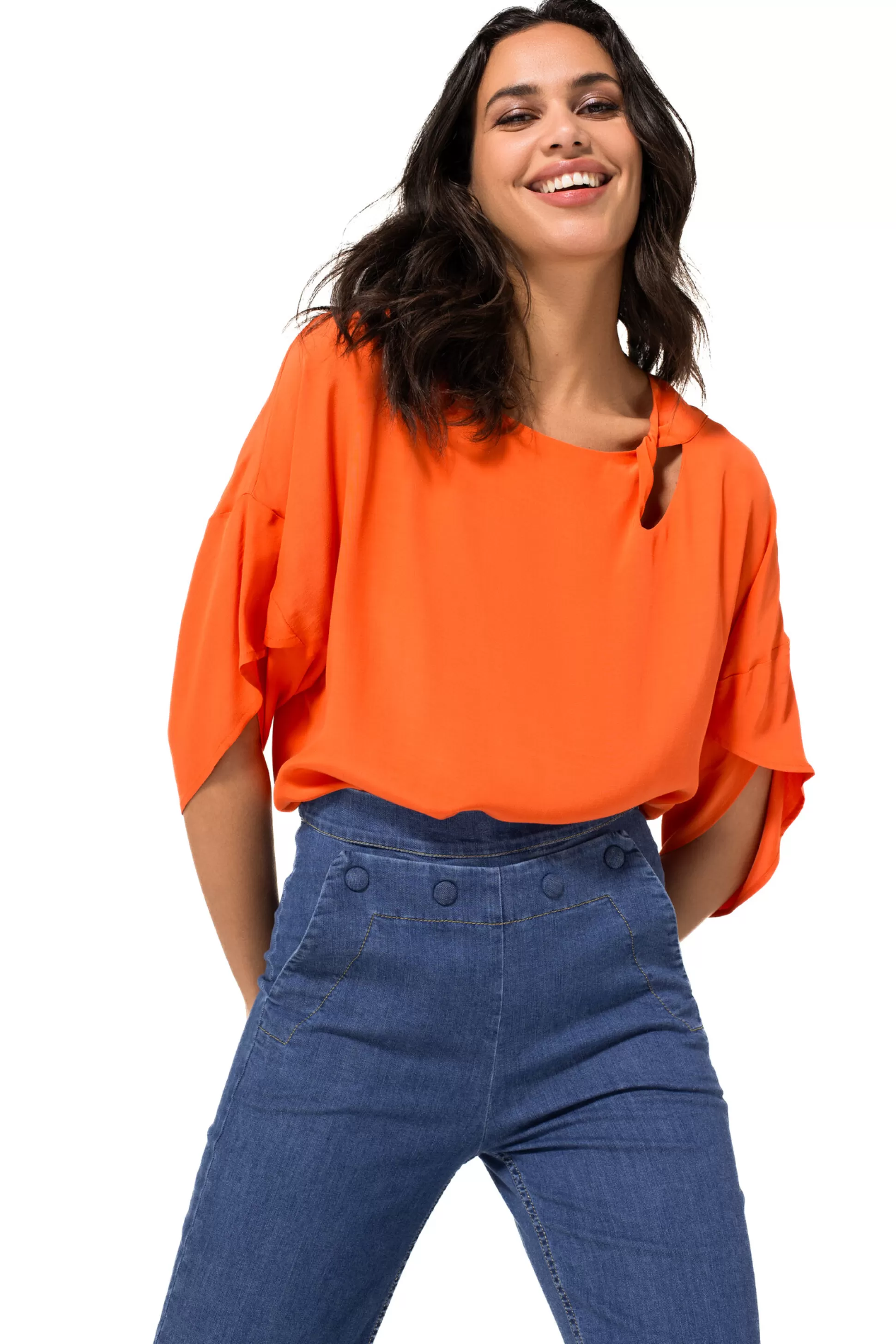 Haut Court Fluide &Nbsp;Manches Courtes Frivoles Ourlet Arrondi