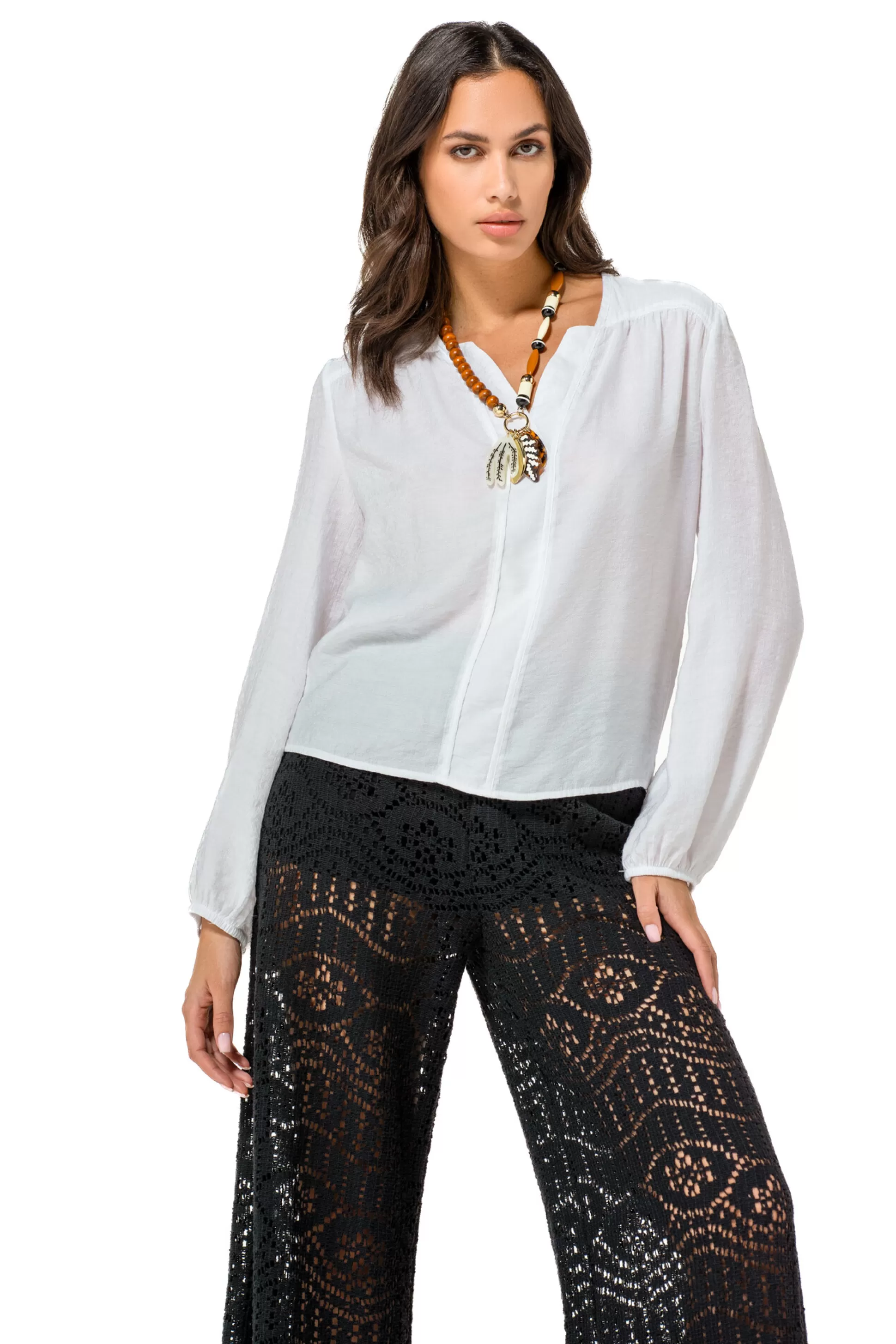 Chemisier Droit &Nbsp;Manches Longues Avec Poignets Ourlet Arrondi