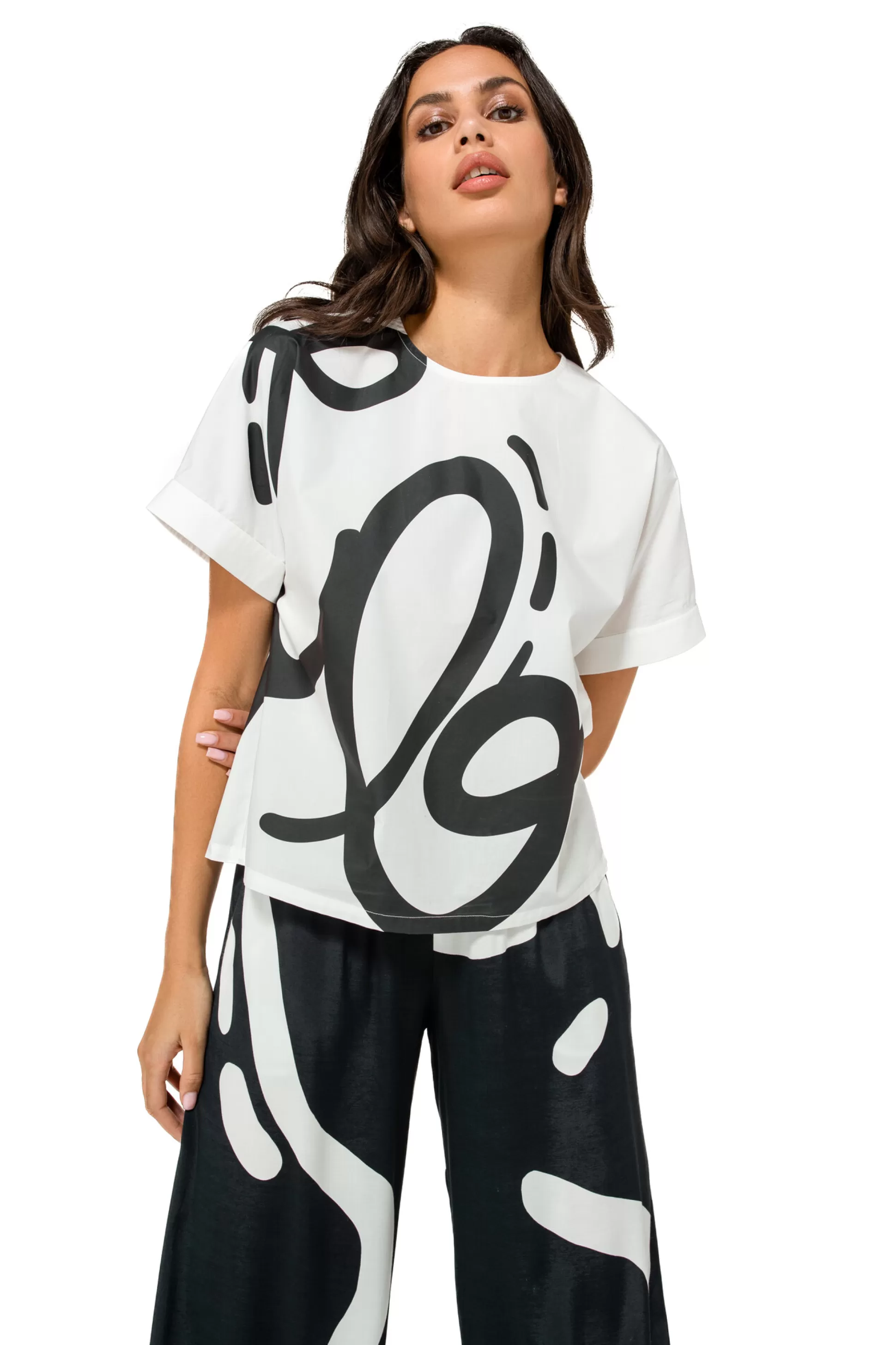 Haut Court Droit En Coton &Nbsp;Manches Courtes Avec Poignets Fermeture Goutte Au Centre Du Cou