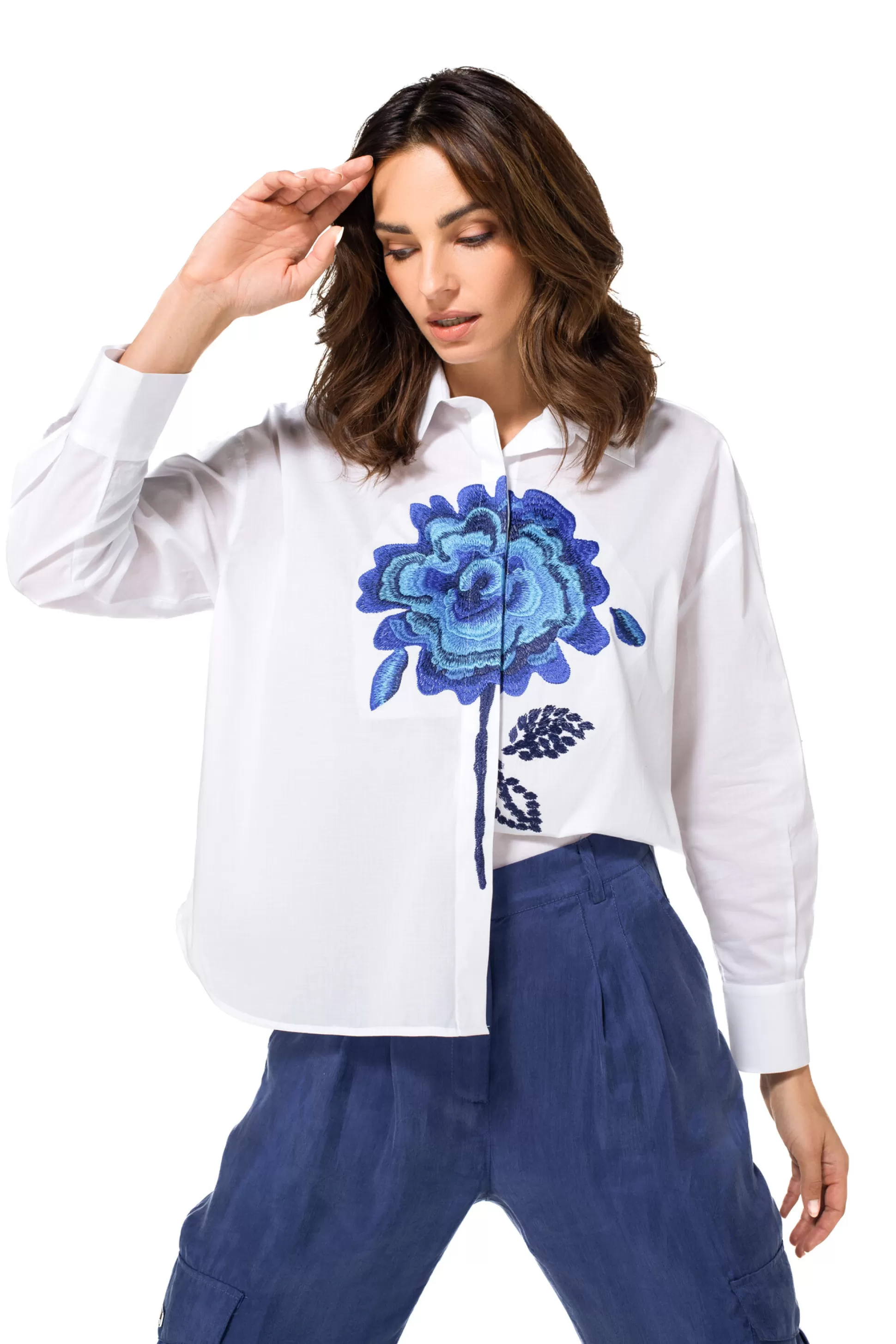 Chemise En Coton Avec Broderie &Nbsp;Manches Longues Et Larges Avec Poignets Et Bouton Fermeture À Boutons Cachés Sur …