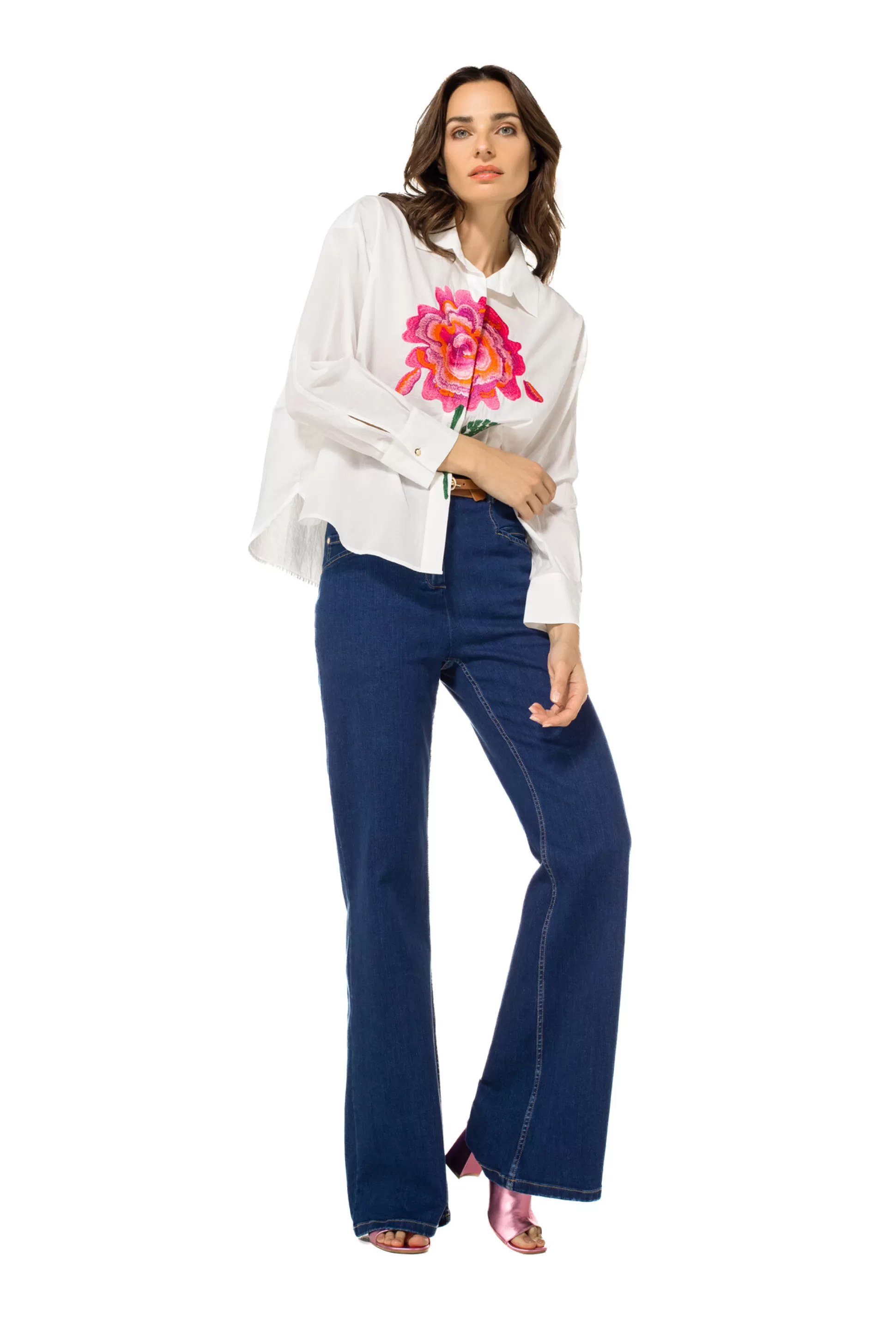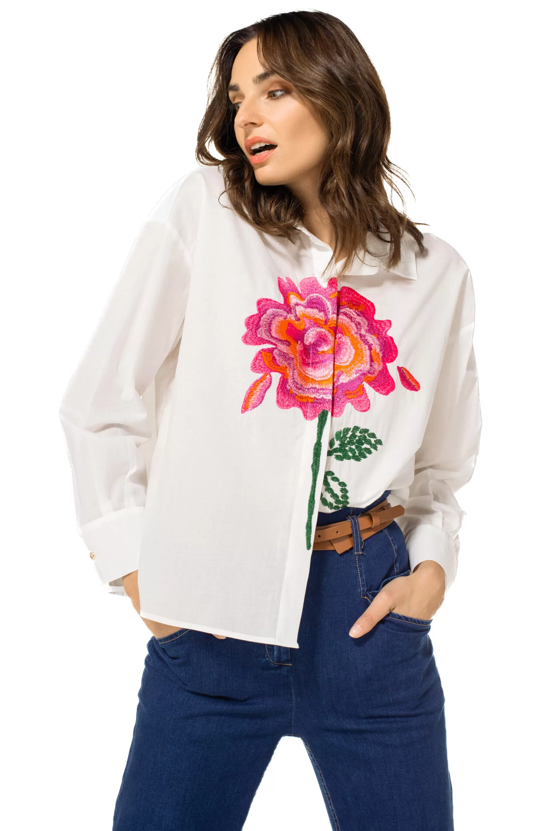 Chemise En Coton Avec Broderie &Nbsp;Manches Longues Et Larges Avec Poignets Et Bouton Fermeture À Boutons Cachés Sur …