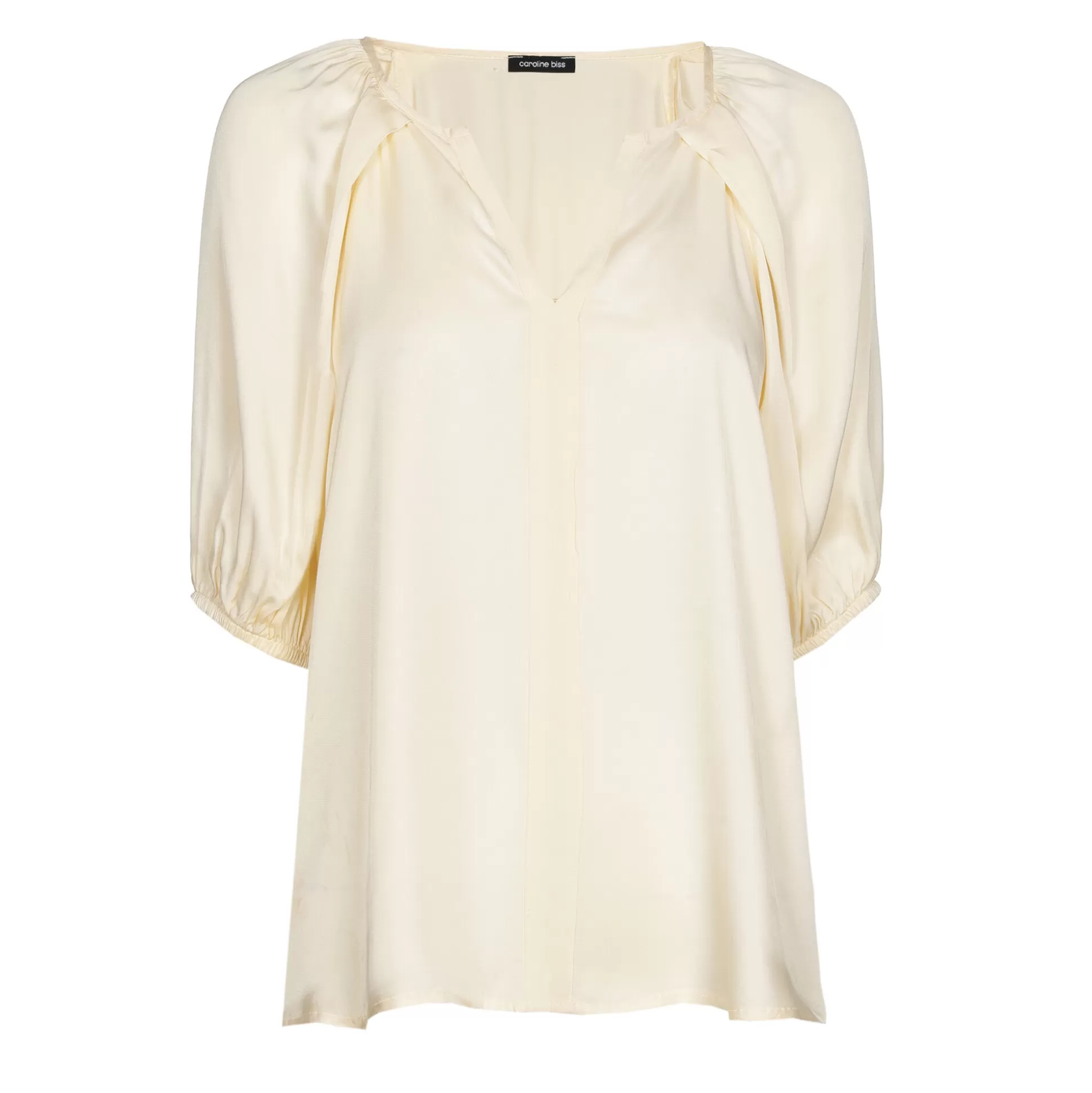 Blouse Droite Fluide &Nbsp;Manches Larges Mi-Longues Avec Poignets Élastiques Toucher : Soie Brillante