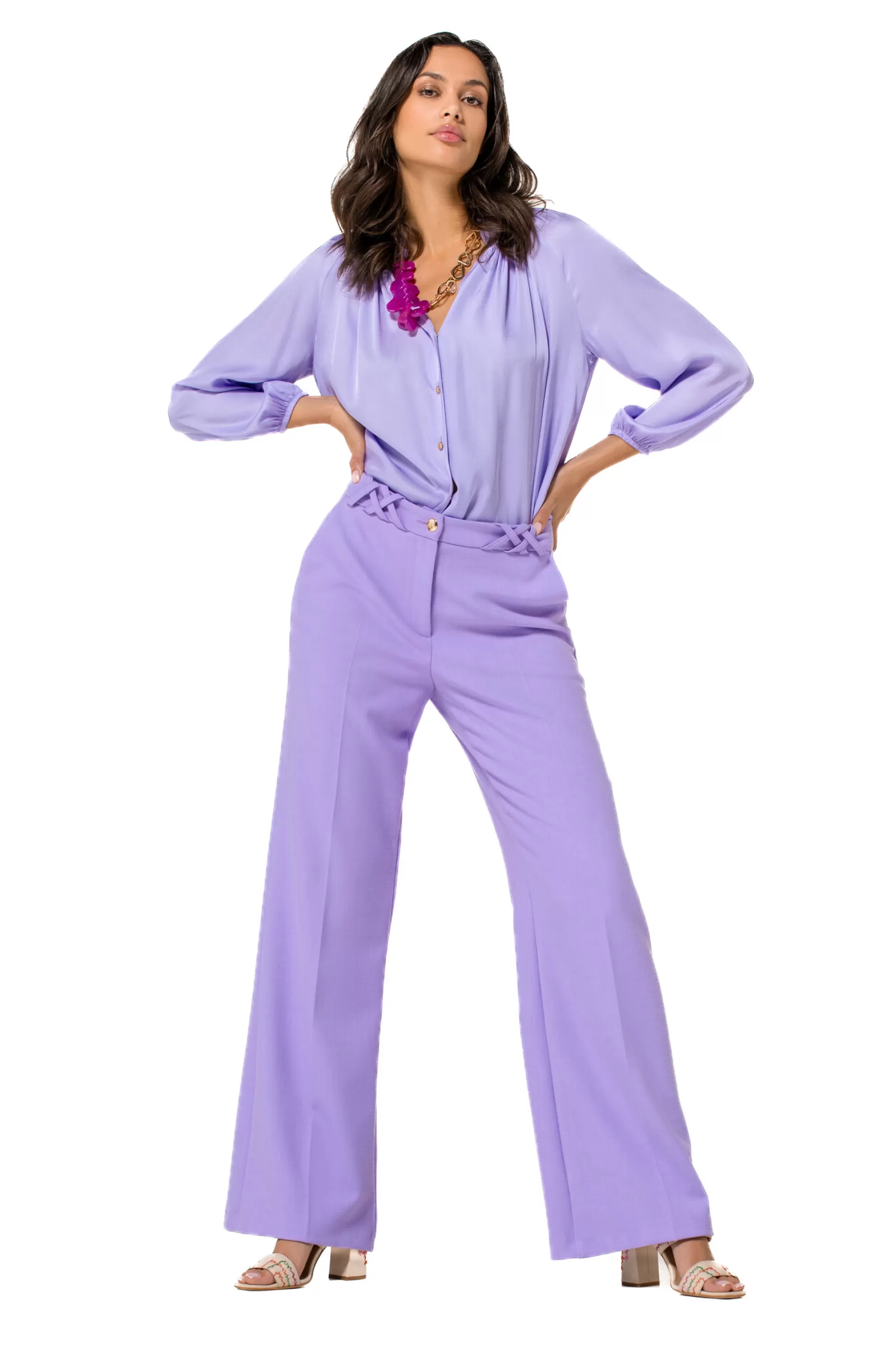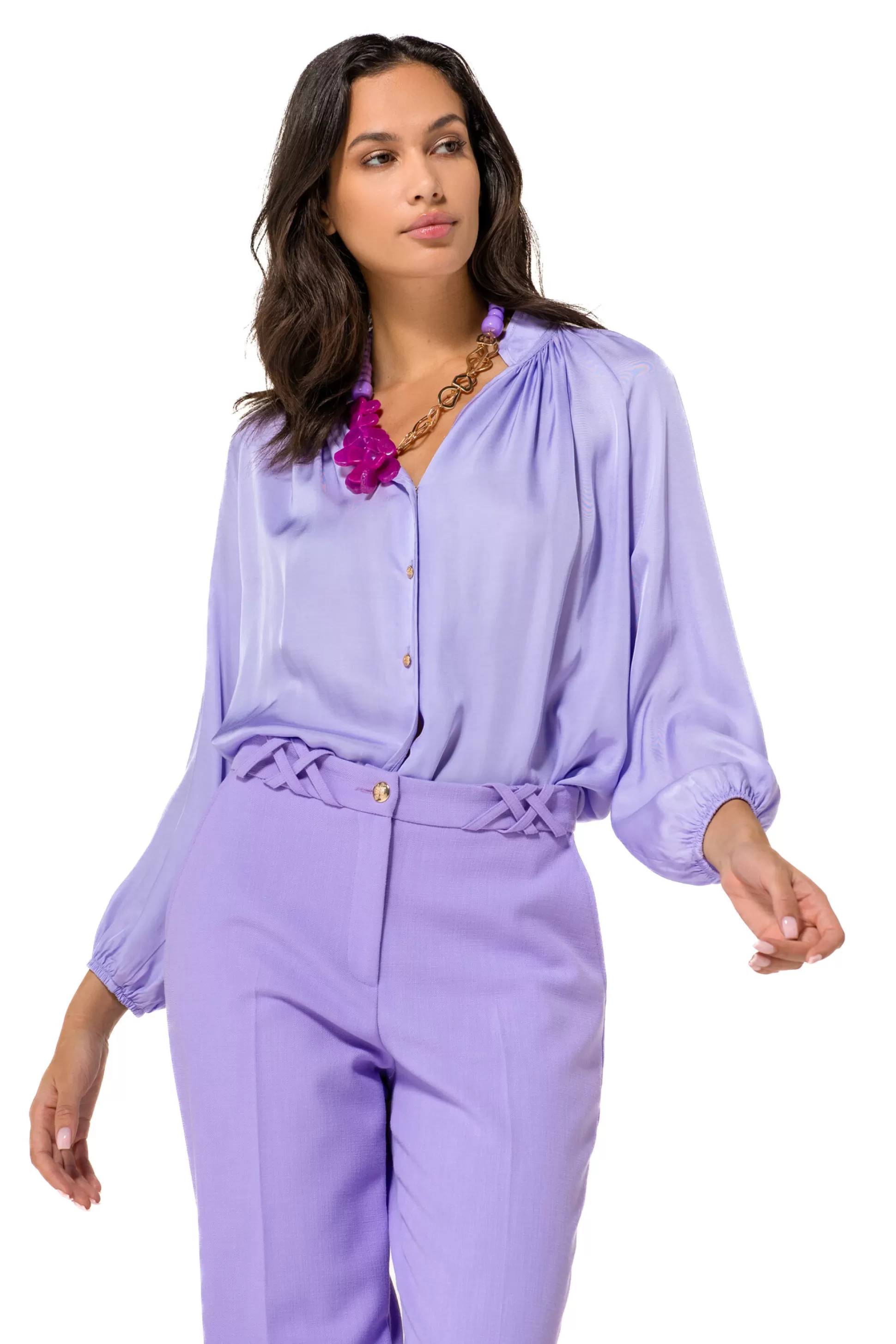Blouse Droite Fluide Et Brillante &Nbsp;Manches Longues Avec Poignets Élastiques Fermeture À Boutons Au Milieu Du Deva…