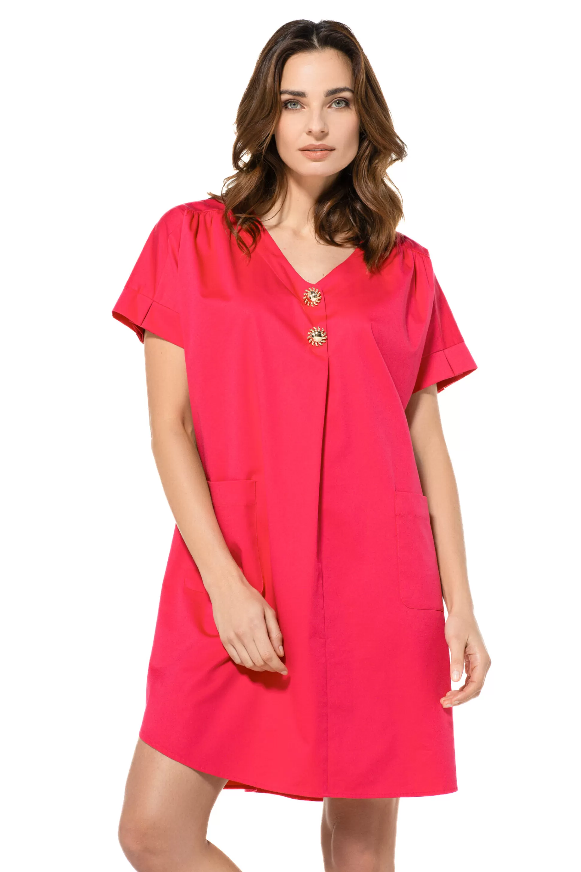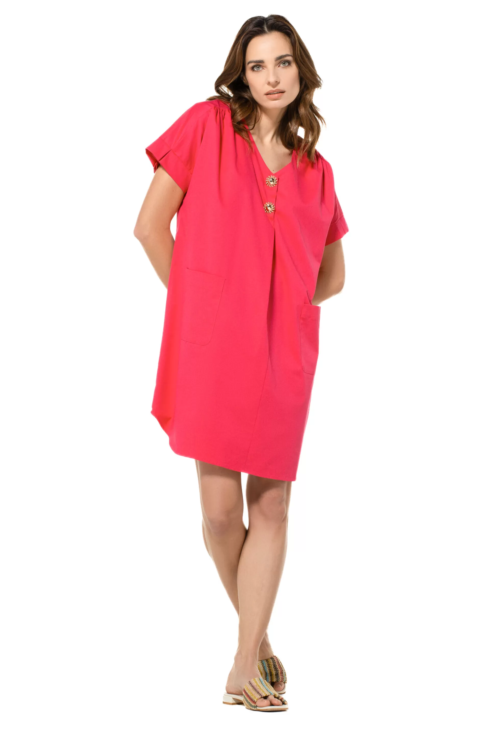Robe Droite Confortable &Nbsp;Non Doublé Pas De Fermeture Poches Cousues Sur Le Devant Détail Plissé Sur L’Épaule Co…