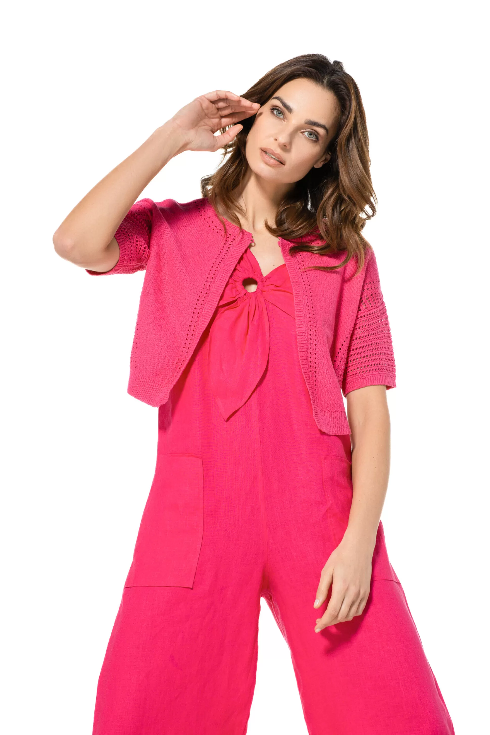Boléro Tricoté &Nbsp;Manches Courtes Fermeture Boutonnée Sur L’Encolure