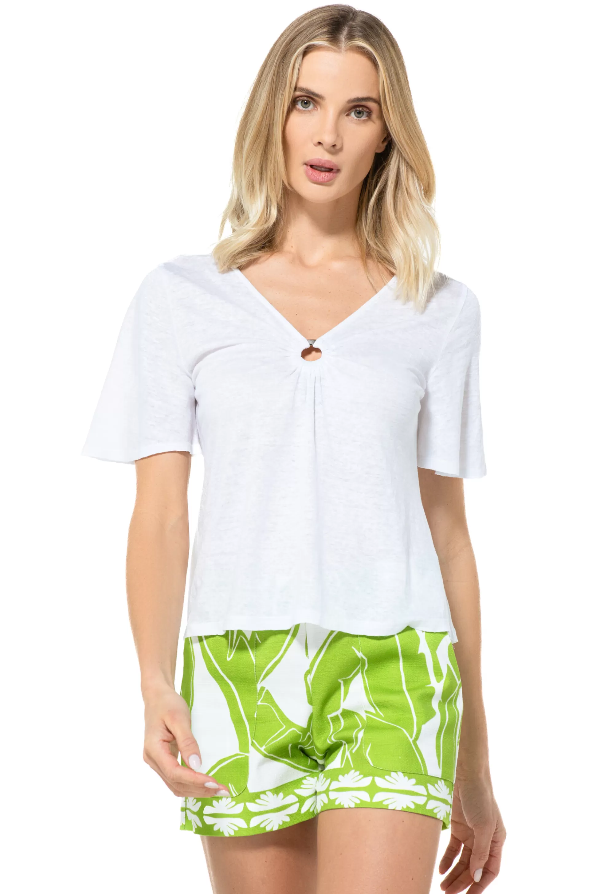 T-Shirt En Lin &Nbsp;Manches Courtes Frivoles